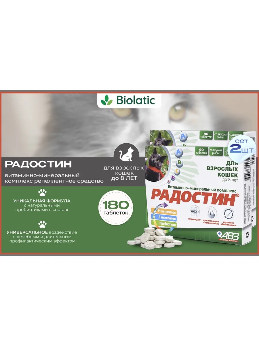 АВЗ Витамины для животных Радостин для кошек до 8 лет 2 шт