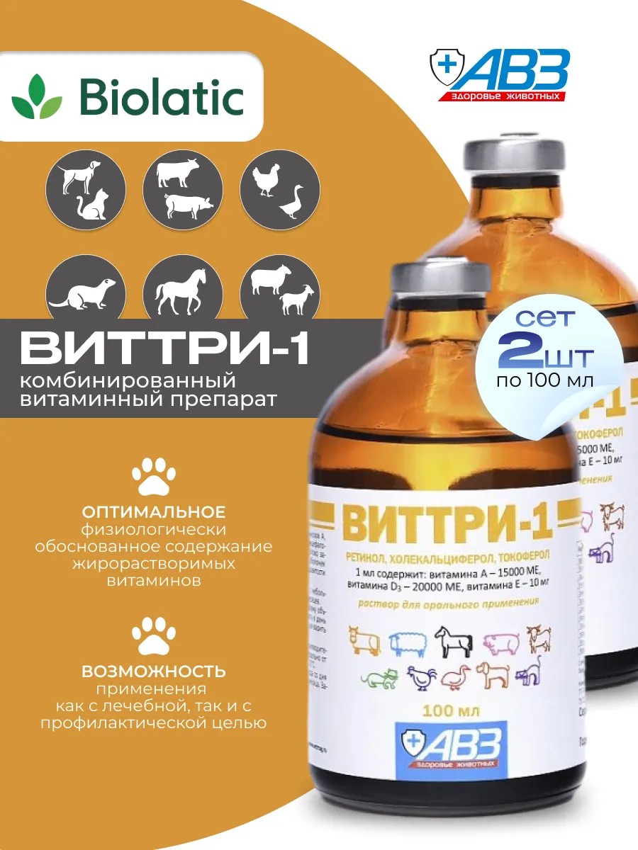 АВЗ Виттри-1 (А, Д, Е) для животных 100 мл сет 2 шт