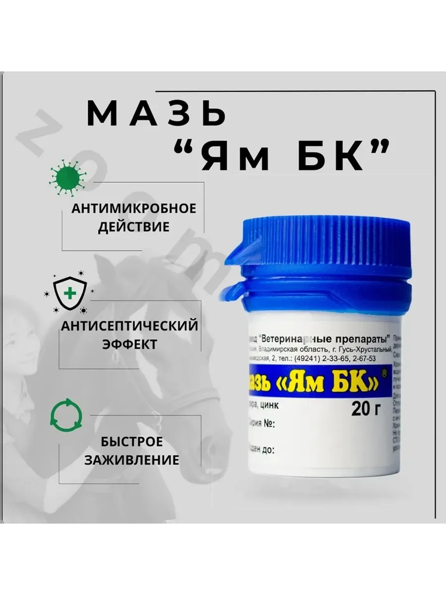 YAM BK ointment is active against the causative agents of trichophytosis and scabies, and is effective in treating eczema, dermatitis, and other skin diseases. The components of the ointment have acaricidal and fungicidal activity; antacid, antiseptic, keratolytic, and astringent properties, which promotes rapid recovery.