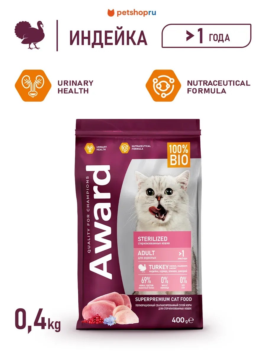 AWARD Сухой корм для кошек, индейка и курица, 400 г