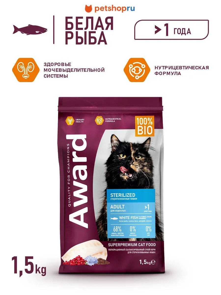 AWARD Сухой корм для кошек, белая рыба, 1,5 кг
