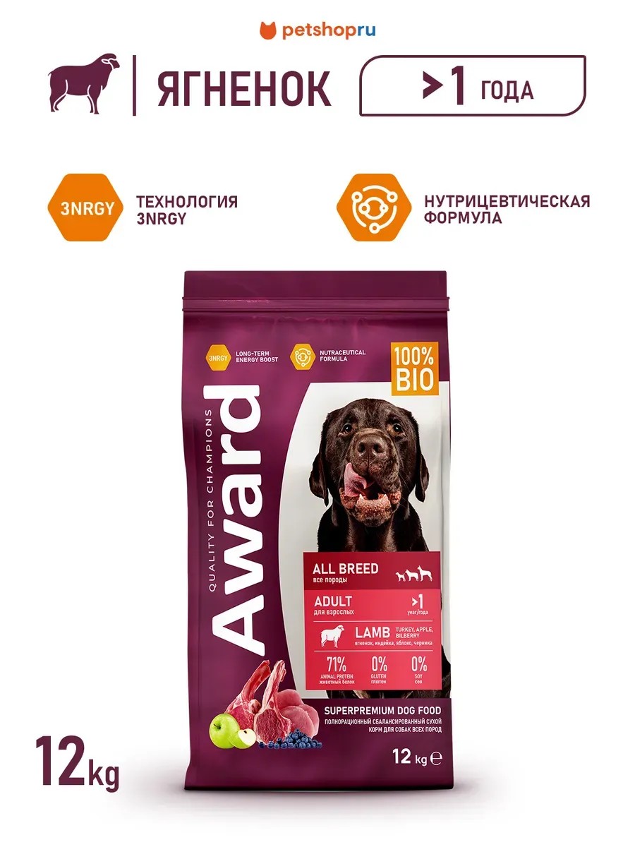 AWARD Сухой корм для собак, ягненок и индейка, 12 кг