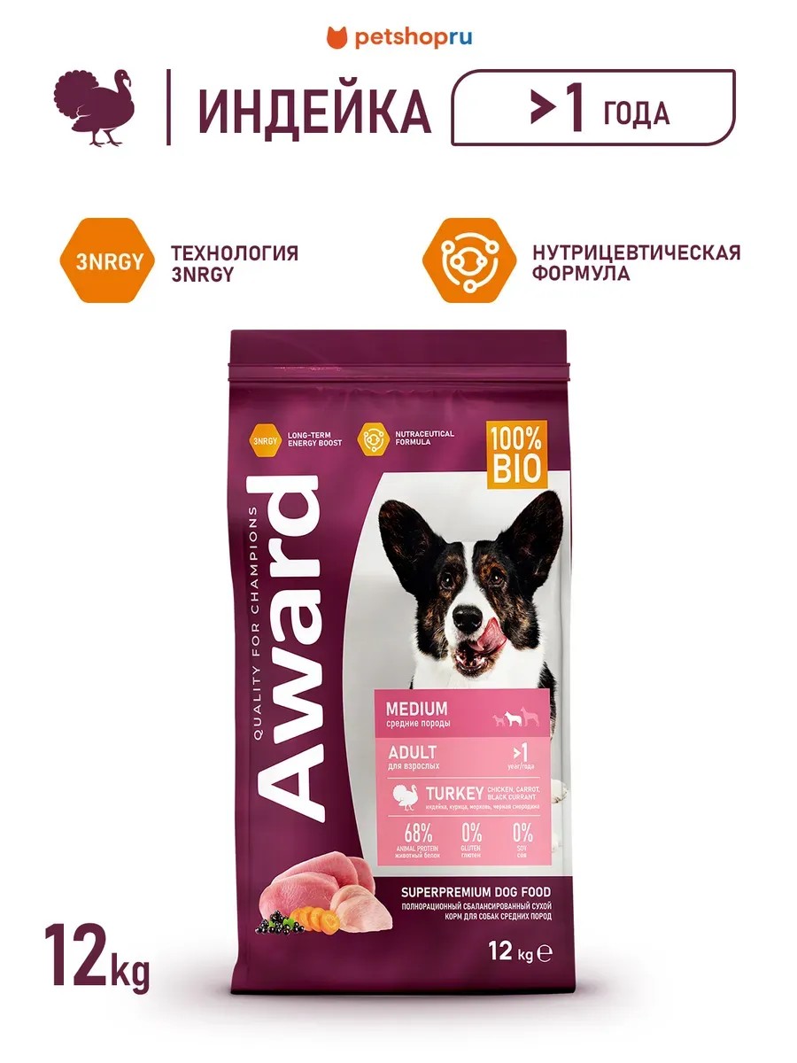 AWARD Сухой корм для собак, индейка и курица, 12 кг