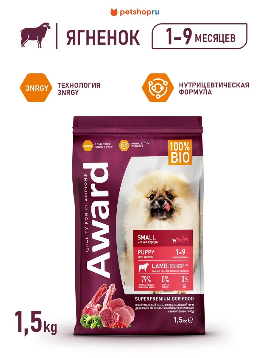 AWARD Сухой корм для щенков, ягненок и индейка, 1,5 кг