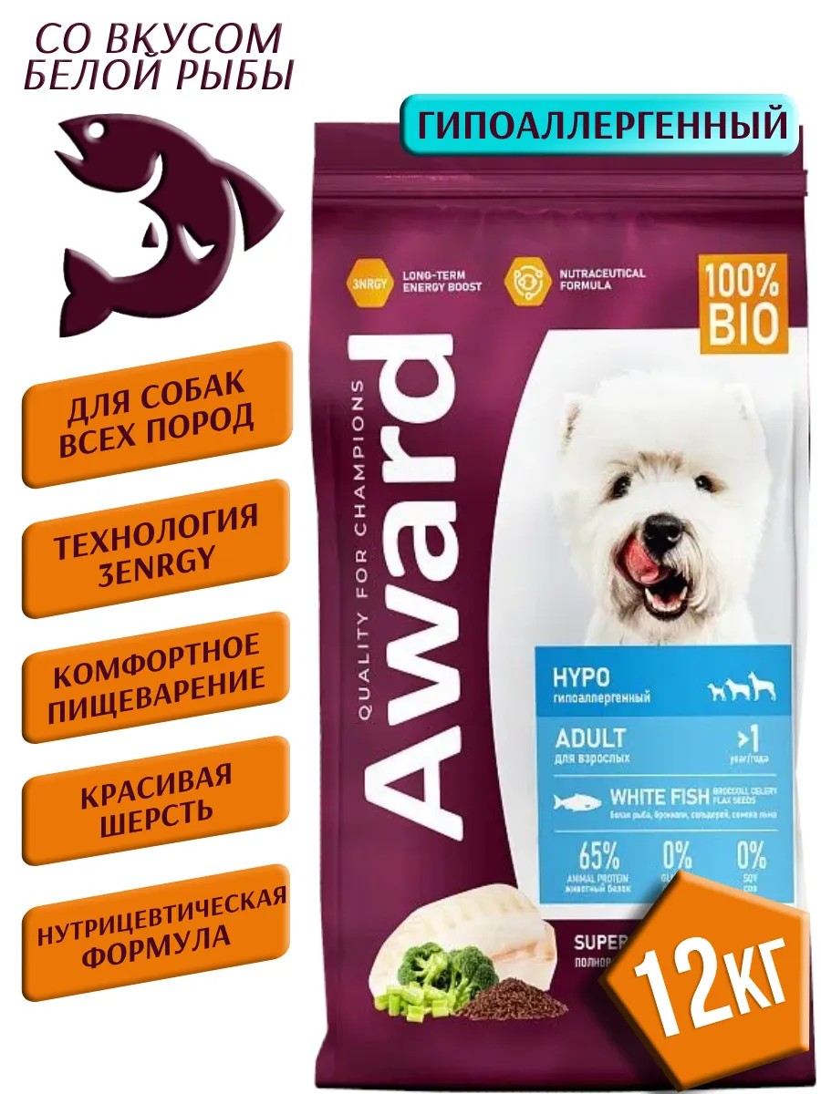 Подарите своему питомцу здоровье и энергию. AWARD собачий сухой гипоаллергенный корм с белой рыбой выбор ответственных хозяев!