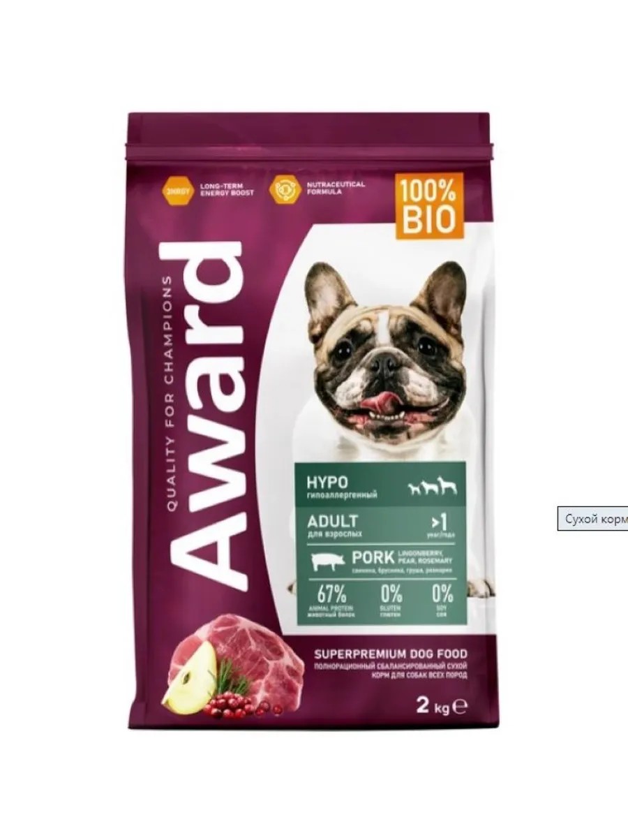 AWARD Корм гипоаллергенный для собак всех пород Свинина 2кг