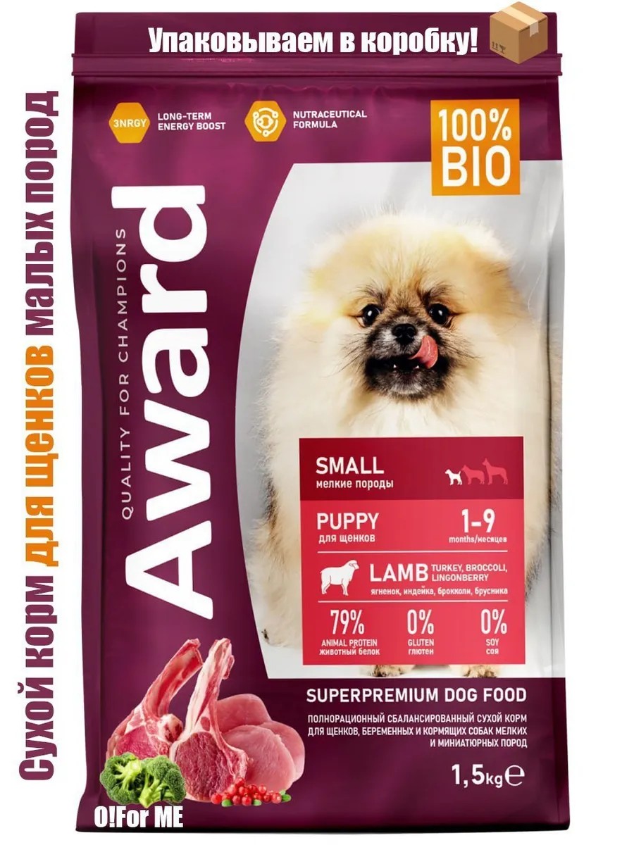 Сухой корм AWARD для щенков от 1 мес, беременных и кормящих сук мелких и мин. пород с ягненком и индейкой с добавлением брокколи и брусники 1,5кг.