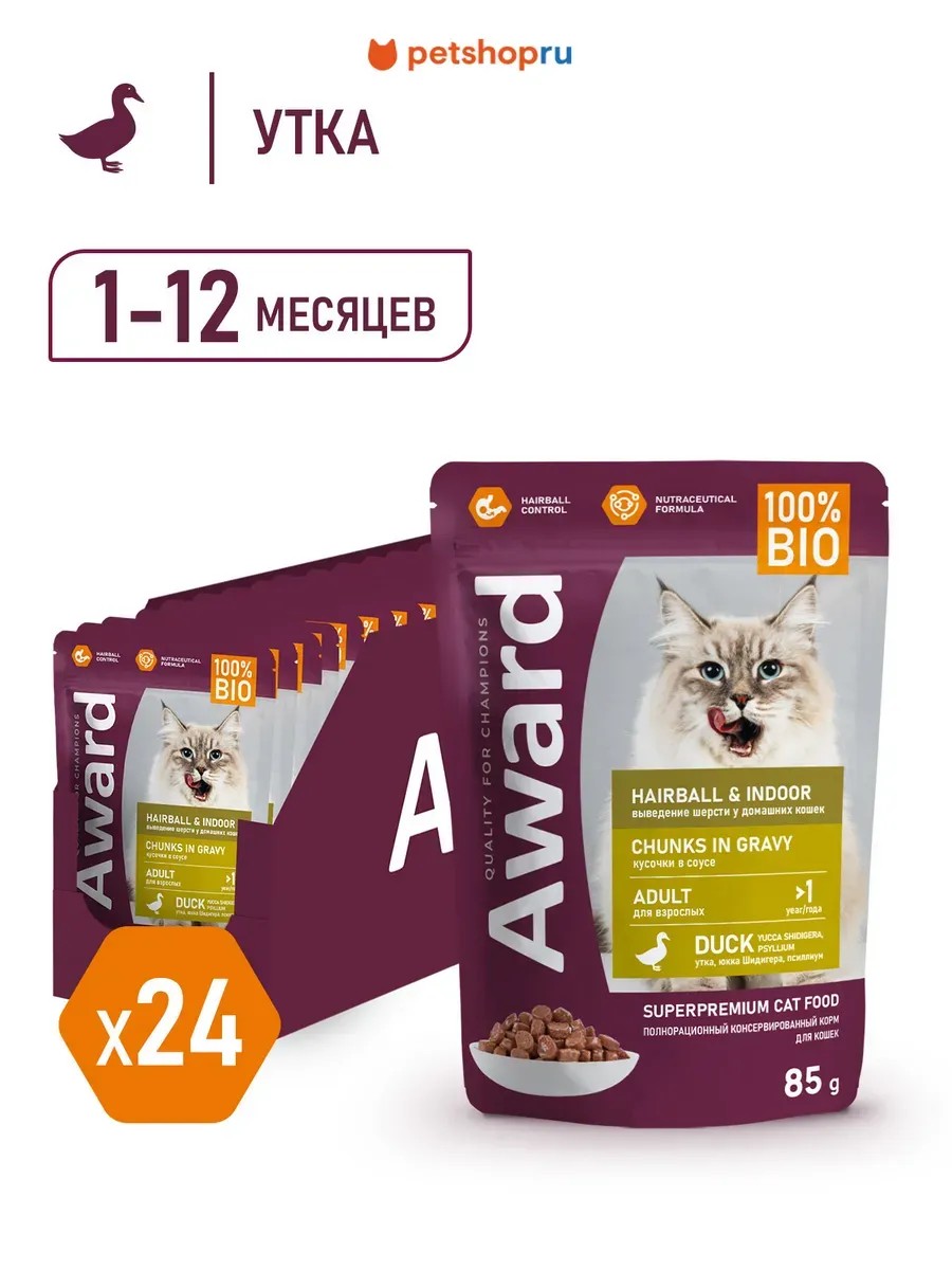 AWARD Пауч для кошек, утка, 85 г * 24 шт