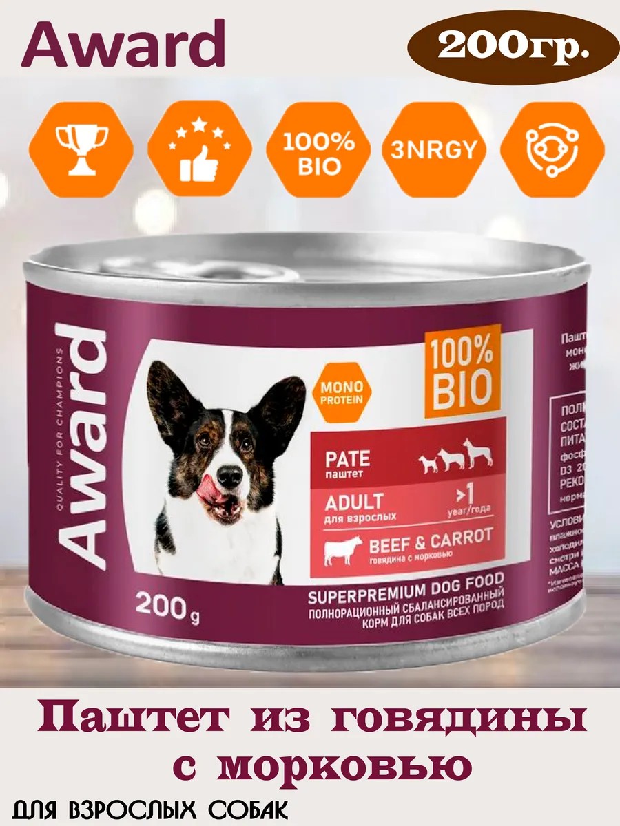 Побалуйте своего четвероногого друга вкусным паштетом AWARD из говядины с морковью — он оценит это лакомство по достоинству!