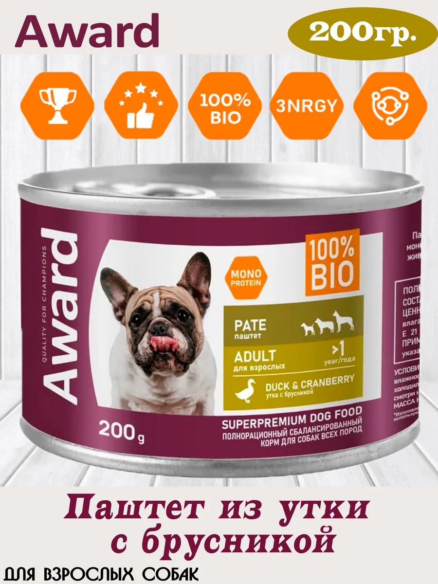 Влажный корм AWARD для взрослых собак — это высококачественный паштет из утки с добавлением брусники, разработанный с учетом потребностей собак в питательных веществах и витаминах. Упакованный в удобные порционные банки по 200 г, этот корм порадует вашего четвероногого друга своим насыщенным вкусом и ароматом.