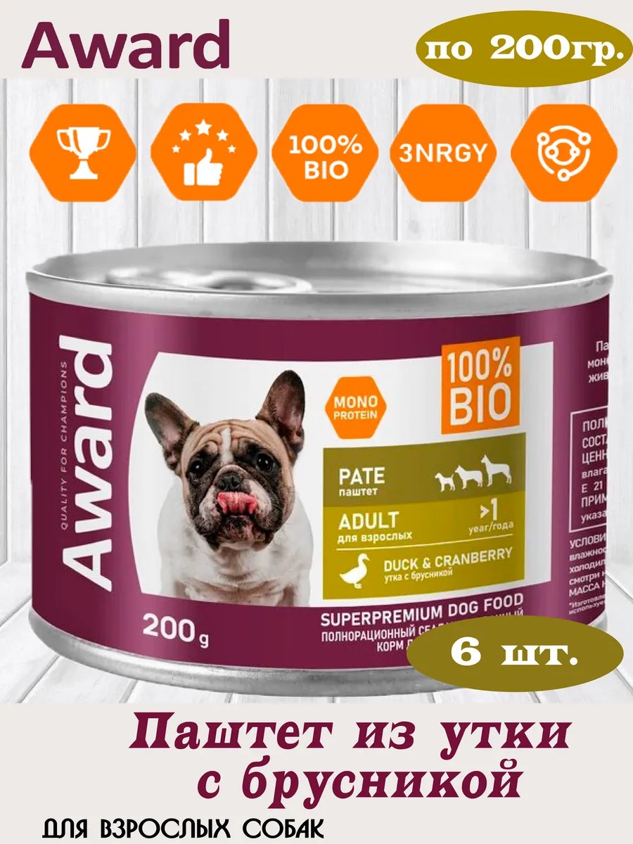 Влажный корм AWARD для взрослых собак — это высококачественный паштет из утки с добавлением брусники, разработанный с учетом потребностей собак в питательных веществах и витаминах. Упакованный в удобные порционные банки по 200 г, этот корм порадует вашего четвероногого друга своим насыщенным вкусом и ароматом.