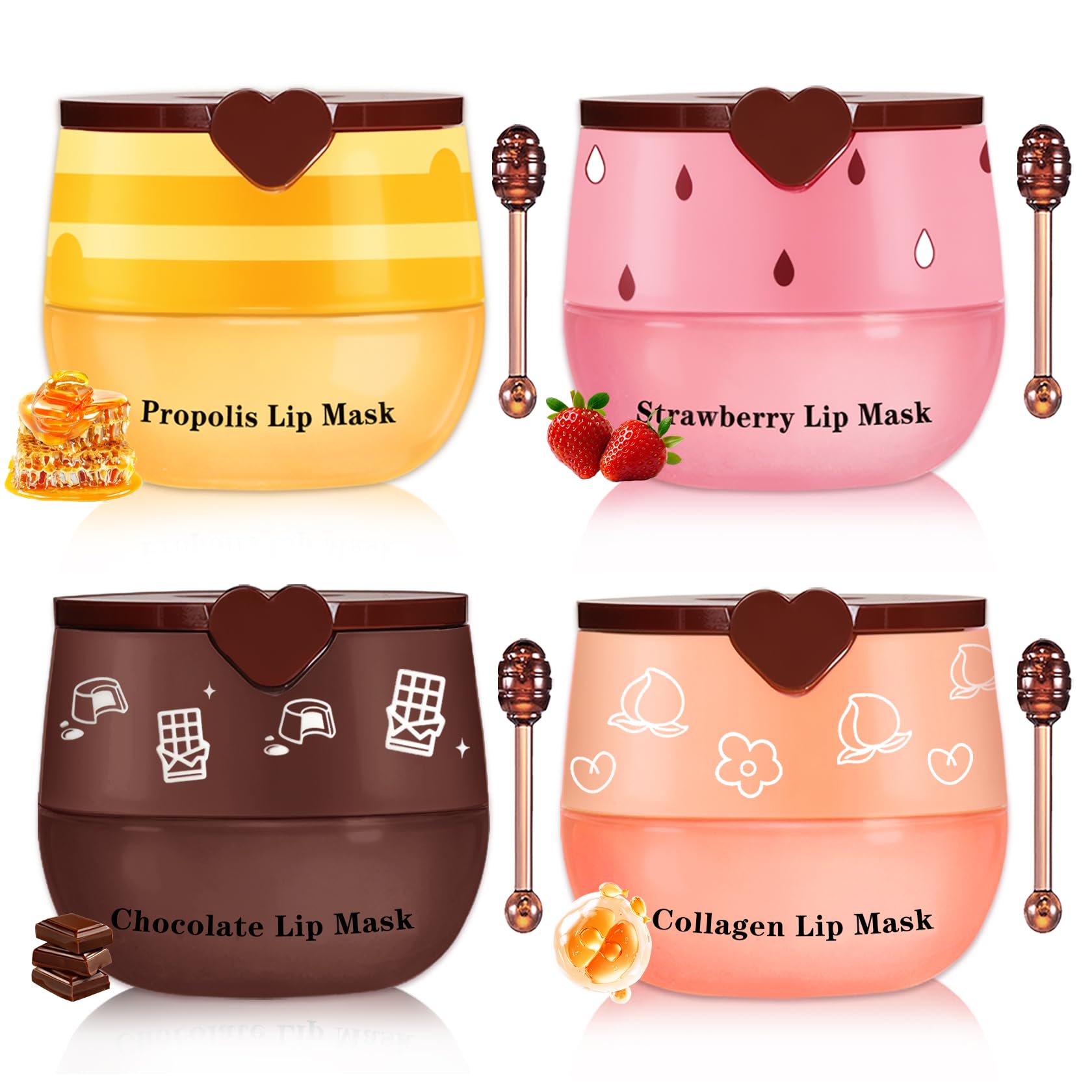 4pcs Bee Lip Balm is crafted from natural ingredients including propolis, strawberry, and collagen. Its gentle formula effectively moisturizes and nourishes lips, delivering intense hydration that absorbs completely. It provides ample nourishment and hydration to the skin. Gently apply to lips to repair damaged, chapped lips. Its compact size makes it easy to carry, and it comes with a small stand inside the packaging. It is the top choice for personal care and makes an ideal holiday gift for friends and family. Natural Ingredients: Made with propolis, strawberry, chocolate, and collagen extract essence, its gentle texture effectively moisturizes and nourishes lips. Deep Hydration: Enriched with moisturizing essences that quickly penetrate the skin, delivering ample nourishment and hydration. Day Night Repair: Apply a thin layer during the day to keep lips moisturized. Use the bee lip balm at night to repair damaged, dry lips. Cute Design: Compact and portable, with a reusable mini stand included in the packaging. A top choice for personal care and a perfect holiday gift for friends and family.Compact Portable Design: Small size for easy carrying. Includes a compact stand in the package that can be stored in the lip mask case for reuse after use. The perfect personal care choice and holiday gift for friends and family. Day Night Repair: Gently apply to lips for complete absorption of nourishing ingredients. This overnight lip mask delivers dual-action care. In the morning, a light swipe repairs damaged, chapped lips. At night, honeybalm lip balm effortlessly exfoliates dead skin cells, revealing more beautiful, radiant lips the next day. Deep Hydration: Bee balm lip balm is rich in moisturizing ingredients. It quickly penetrates the skin, locking in moisture to provide ample nourishment and hydration. It delivers sustained, powerful hydration and nourishment, creating plump, hydrated lips that feel silky smooth and supple. Natural Ingredients: propolis, strawberry, chocolate, collagen extracts etc. Honey lip balm has a gentle texture that effectively moisturizes and nourishes lips, delivering a sweet, silky-smooth experience. Consistent use helps reduce lip lines. Bee Lip Balm: 4pcs portable lip mask crafted from natural ingredients like propolis, strawberry, and collagen. It delivers deep nourishment and intense hydration, easily absorbed by lips. Day and night repair helps smooth lip lines, exfoliate dead skin and nourish lips for soft, supple results. Achieve healthy, beautiful lips—also makes a perfect holiday gift for family and friends.