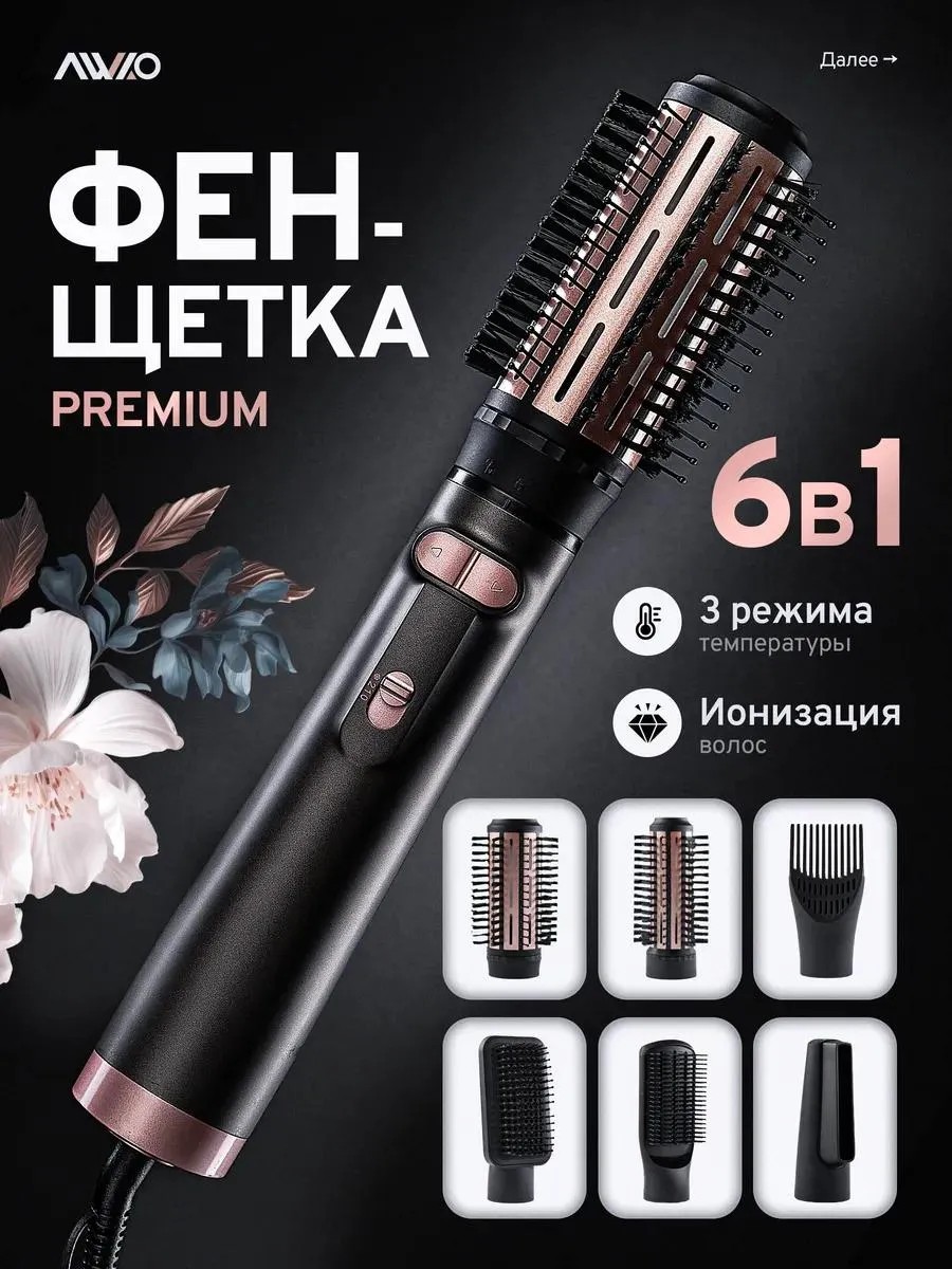 Наша фен щётка для волос с вращением создана для лёгкого и быстрого создания укладок. Благодаря 6 сменным насадкам, вы можете создавать разнообразные прически: от гладких и прямых волос до пышных локонов. Просто выберите нужную насадку, и ваш фен расческа для волос с вращением сам сделает всё остальное. Фен щетка для волос с выпрямлением позволит вам не только придавать волосам объём, но и делать их гладкими и шелковистыми. С расческой фен-расческой крутящейся вы сможете экспериментировать с любыми образами. От локонов, которые легко создать с помощью фена плойки крутящейся, до гладкой укладки благодаря фену стайлер брашинг – всё это возможно с нашим феном для волос крутящейся расческой!