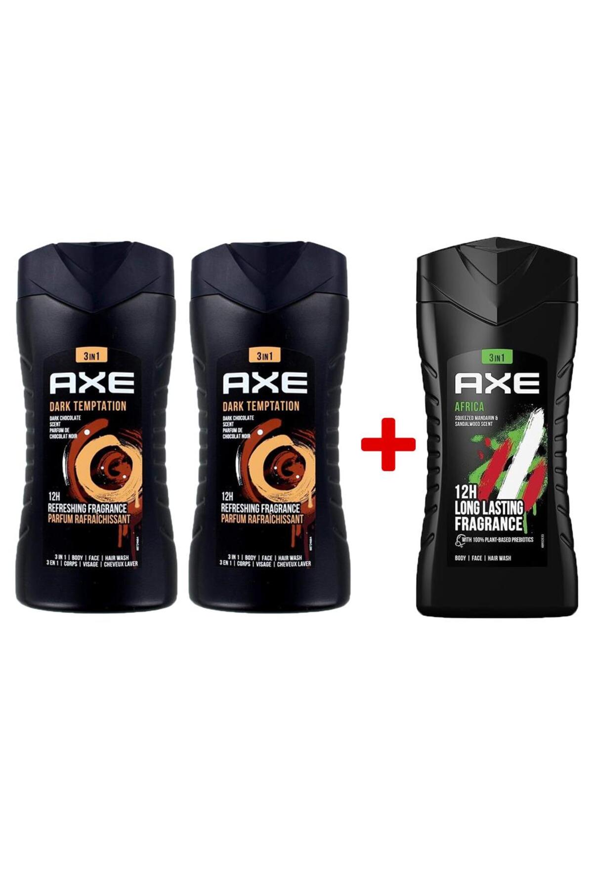 Axe Dark Temptation + Africa 3in1 Men's Shower Gel 250ML 2+1 Pack