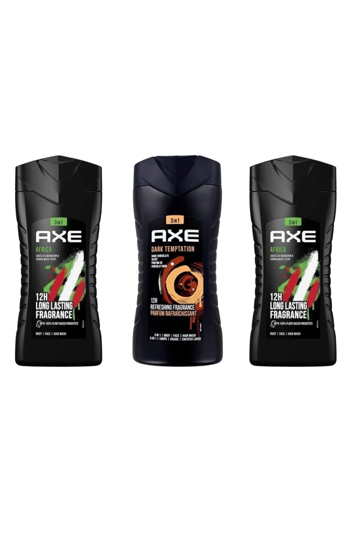 Axe Dark Temptation Shower Gel & Africa 3in1 Men's Shower Gel 250ML 3 Piece Set