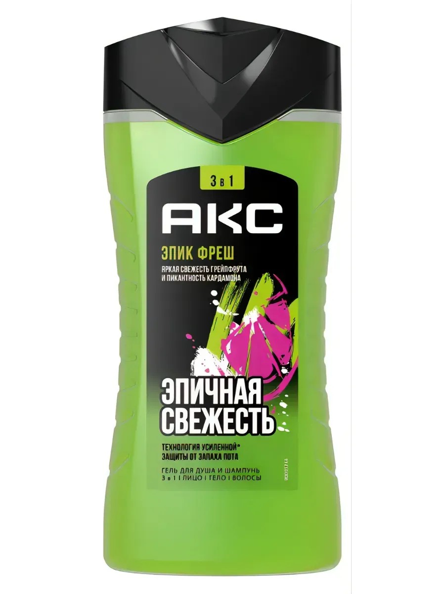Акс Гель для душа мужской парфюмированный 3в1 - это то, что нужно для вашего комфорта, свежести и уверенности в себе! Для максимального эффекта дополни гель для душа 3в1 мужской дезодорантом-инновацией Эпик Фреш Акс.
