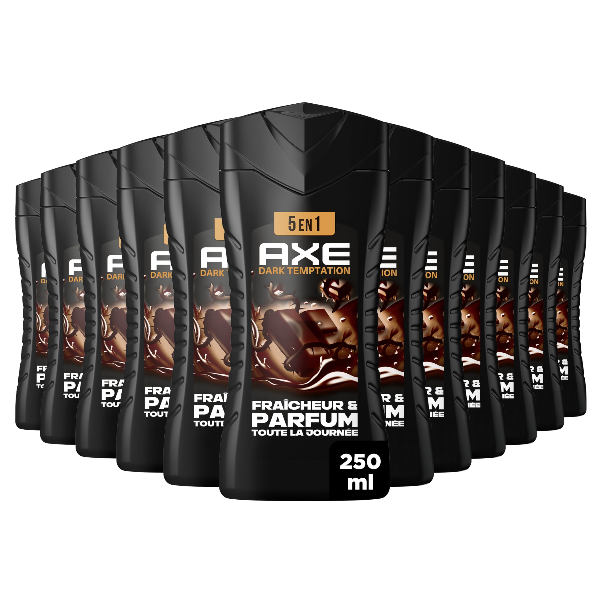 Welcome to the future, it smells amazing! Feel clean and fresh and smell irresistibly good for longer with the new AXE Dark Temptation 5-in-1 Body Wash for men in a 250ml bottle. Its dermatologically tested formula, made with 87 naturally derived ingredients, fights odor and provides 24-hour hydration. With a neutral pH, it eliminates odor-causing bacteria and delivers all-day freshness and fragrance, while respecting men's skin. This new formula is PETA certified, meaning it is not tested on animals anywhere in the world. This AXE body wash releases a chocolate and tonka bean scent for an incredibly addictive effect. Plus, the bottle is made from 100 recycled plastic and is fully recyclable. Just drop it in the recycling bin! Love the scent of this body wash for men? AXE Dark Temptation is also available as a deodorant for even more freshness. Since 1983, AXE, the No. 1 deodorant brand in France , has been supporting men every day with its complete range of grooming products: deodorants, antiperspirants, shower gels, and colognes. Everything a man needs to express his style and stay confident throughout the day. Because what makes a man attractive is, above all, his own style! Our products have a sensual fragrance with sophisticated notes, allowing you to stay fresh, confident, and smell great, even during the heat of the day. INGREDIENTS Aqua, Sodium Laureth Sulfate, Glycerin, Cocamidopropyl Betaine, Sodium Chloride, Parfum, Sodium Benzoate, Citric Acid, Lactic Acid, Disodium EDTA, PPG-6, Saccharide Isomerate, Citrus Aurantium Peel Oil, Geraniol, Limonene, Linalool, Tetramethyl Acetyloctahydronaphthalenes, Vanillin, CI 17200, CI 19140, CI 42090. SAFETY WARNING We regularly improve our formulas please always check the information on the product label. See more Welcome to the future, it smells amazing! Feel clean and fresh and smell irresistibly good for longer with the new AXE Dark Temptation 5-in-1 Body Wash for men in a 250ml bottle. Its dermatologically tested formula, made with 87 naturally derived ingredients, fights odor and provides 24-hour hydration. With a neutral pH, it eliminates odor-causing bacteria and delivers all-day freshness and fragrance, while respecting men's skin. This new formula is PETA certified, meaning it is not tested on animals anywhere in the world. This AXE body wash releases a chocolate and tonka bean scent for an incredibly addictive effect. Plus, the bottle is made from 100 recycled plastic and is fully recyclable. Just drop it in the recycling bin! Love the scent of this body wash for men? AXE Dark Temptation is also available as a deodorant for even more freshness. Since 1983, AXE, the No. 1 deodorant brand in France , has been supporting men every day with its complete range of grooming products: deodorants, antiperspirants, shower gels, and colognes. Everything a man needs to express his style and stay confident throughout the day. Because what makes a man attractive is, above all, his own style! Our products have a sensual fragrance with sophisticated notes, allowing you to stay fresh, confident, and smell great, even during the heat of the day. INGREDIENTS Aqua, Sodium Laureth Sulfate, Glycerin, Cocamidopropyl Betaine, Sodium Chloride, Parfum, Sodium Benzoate, Citric Acid, Lactic Acid, Disodium EDTA, PPG-6, Saccharide Isomerate, Citrus Aurantium Peel Oil, Geraniol, Limonene, Linalool, Tetramethyl Acetyloctahydronaphthalenes, Vanillin, CI 17200, CI 19140, CI 42090. SAFETY WARNING We regularly improve our formulas please always check the information on the product label. See moreAXE - Gel Douche Homme 5en1 Dark Temptation - 24h Hydratant - 87 d'Ingrédients d'origine naturelle - parfum chocolat gourmand - lot de 12x250mlDESCRIPTION DU PRODUIT DESCRIPTION DU PRODUIT Bienvenue dans le futur, ça sent incroyablement bon ! Sens-toi propre et frais et sens irrésistiblement bon pour plus longtemps avec le nouveau gel douche homme 5-en-1 AXE Dark Temptation au format 250 ml. Sa formule testée dermatologiquement et composée à 87 d'ingrédients d'origine naturelle combat les odeurs et assure 24 h d'hydratation. Au pH neutre, elle élimine les bactéries responsables des mauvaises odeurs et offre fraîcheur et parfum toute la journée, tout en respectant la peau des hommes. Cette nouvelle formule est certifiée Peta, ce qui signifie qu'aucun test n'est fait sur les animaux dans le monde entier. Ce gel douche AXE libère un parfum de chocolat et de tonka pour un effet incroyablement addictif. En plus, sa bouteille est 100 en plastique recyclé et entièrement recyclable. Dépose-la dans le bac de tri ! Tu aimes le parfum de ce gel douche homme ? AXE Dark Temptation existe aussi en déodorant pour encore plus de fraîcheur. Depuis 1983, la marque AXE, N 1 des déodorants en France , accompagne les hommes au quotidien avec sa gamme complète de soins d'hygiène : déodorants, anti-transpirants, gels douche et eaux de toilette. Tout ce dont un homme a besoin pour affirmer son style et rester confiant tout au long de la journée. Car ce qui rend un homme attirant, c'est avant tout son propre style ! Nos produits ont une fragrance sensuelle aux notes sophistiquées, ce qui te permet de rester frais, confiant et de sentir bon, même lors des coups de chaud du quotidien. INGRÉDIENTS Aqua, Sodium Laureth Sulfate, Glycerin, Cocamidopropyl Betaine, Sodium Chloride, Parfum, Sodium Benzoate, Citric Acid, Lactic Acid, Disodium EDTA, PPG-6, Saccharide Isomerate, Citrus Aurantium Peel Oil, Geraniol, Limonene, Linalool, Tetramethyl Acetyloctahydronaphthalenes, Vanillin, CI 17200, CI 19140, CI 42090. AVERTISSEMENT DE SÉCURITÉ Nous améliorons nos formules régulièrement, merci de toujours vérifier les informations présentes sur l'étiquette du produit. Voir plusLa bouteille de ce gel douche AXE est 100 en plastique recyclé et entièrement recyclable. Dépose-moi dans le bac de tri ! La nouvelle formule de ce gel douche est certifiée Peta, ce qui signifie qu'aucun t