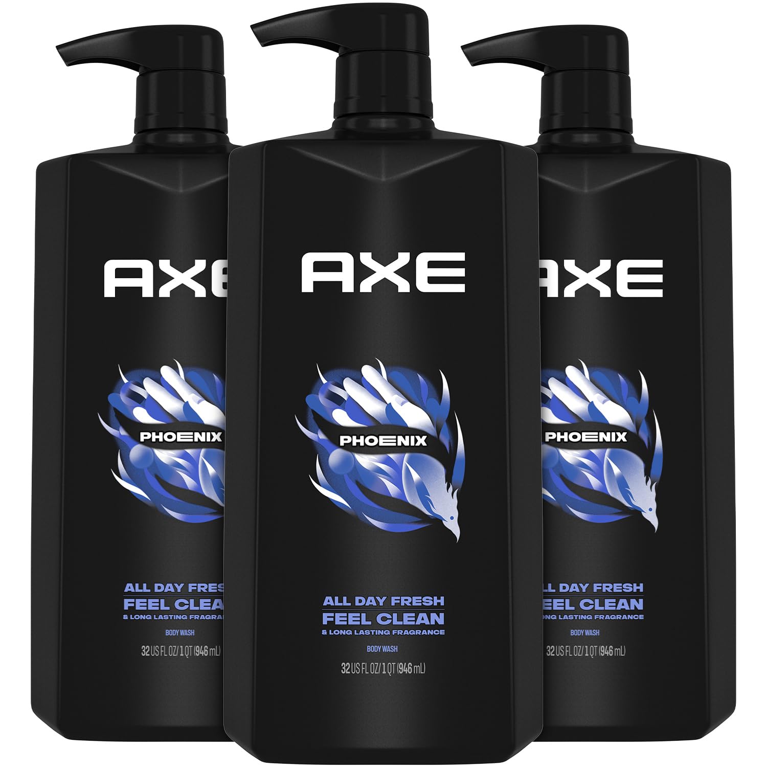 AXE Men's Body Wash & Shower Gel Phoenix 3-Pack 12H Invigorating Crushed Mint & Rosemary Scent 32 Fl Oz Ea