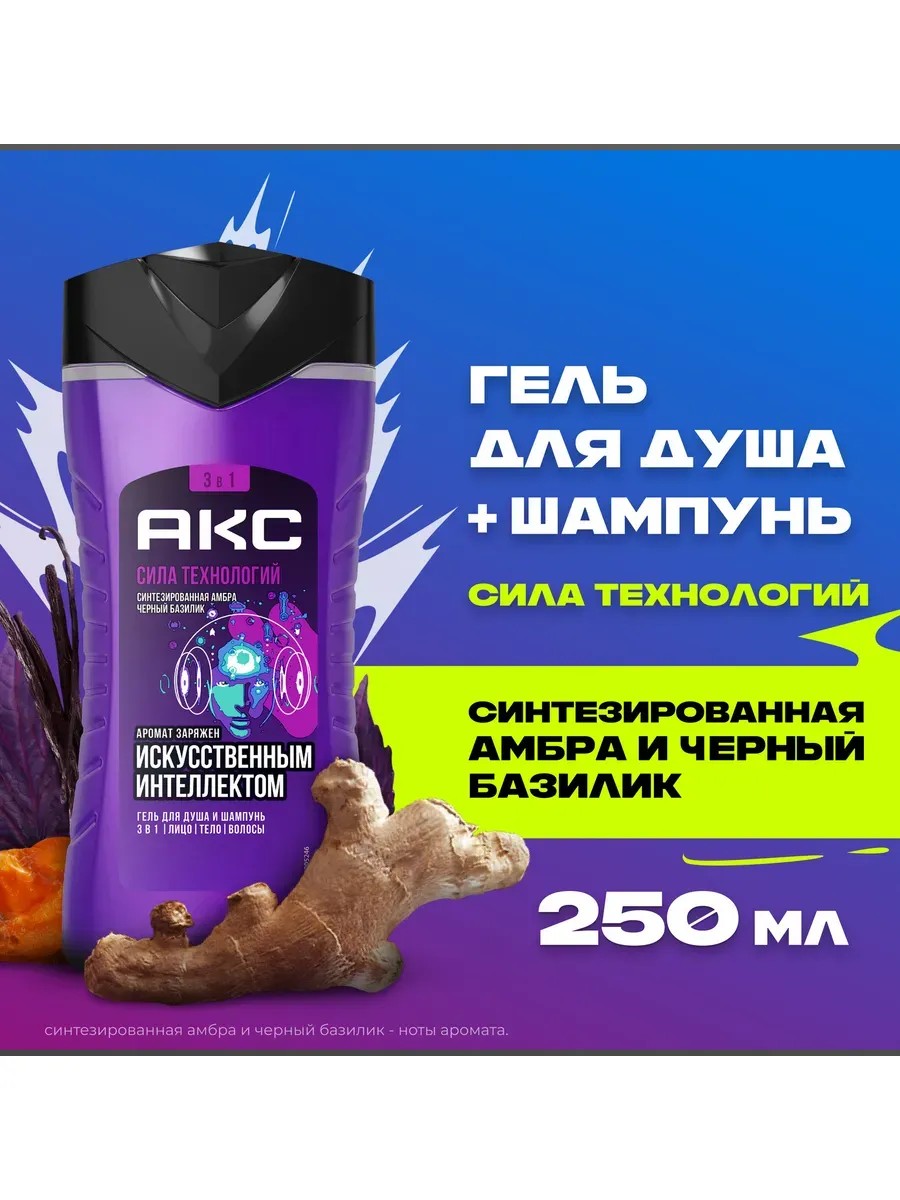 Гель для душа и шампунь Сила технологий — это результат нашего маленького эксперимента. Мы ненадолго оторвали искусственный интеллект от рисования аватарок по фото и предложили ему проанализировать мужские вкусы в ароматах. Спойлер: его выбор оказался неожиданным, но тебе точно стоит познакомиться с ним поближе! Готов довериться мнению искусственного интеллекта? Тогда вперед!
