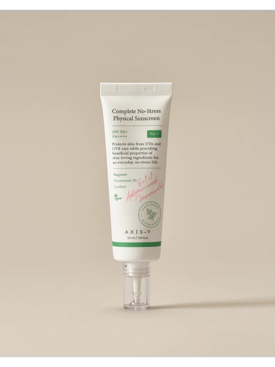 AXIS-Y Complete No-Stress Physical Sunscreen – это эффективный физический солнцезащитный крем с высокой степенью защиты SPF 50+, разработанный для обеспечения максимальной защиты кожи от вредного ультрафиолетового излучения. Продукт создан с учетом потребностей современной городской жизни, где стрессовые факторы могут негативно влиять на состояние кожи.