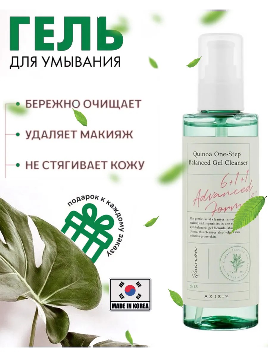 Универсальный очищающий гель с киноа AXIS-Y Quinoa One Step Balanced Gel Cleanser— балансирующее средство для умывания 2в1: смывает макияж, тональные и солнцезащитные средства, любые загрязнения и пыль.