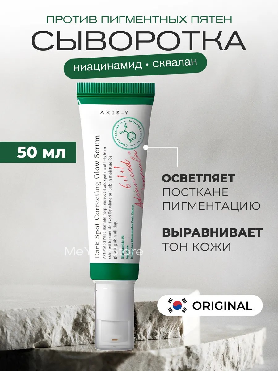 AXIS Y Сыворотка Dark Spot Correcting Glow Serum корректирует неровный тон лица, отбеливает гиперпигментацию, осветляет веснушки, следы постакне и признаки фотостарения.