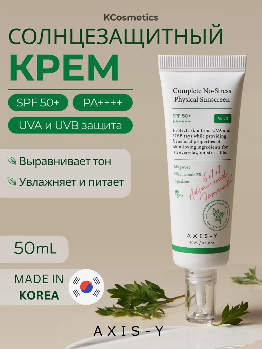 Complete No-Stress Physical Sunscreen V.3 is an updated version of Axis-Y's sunscreen. It provides reliable sun protection thanks to a mineral filter—zinc oxide—which reflects UVA and UVB rays, preventing sunburn, pigmentation, and photoaging. Unlike many other physical creams, this product has a light, non-greasy texture that doesn't leave a white cast and absorbs quickly, creating a comfortable, almost weightless coverage.