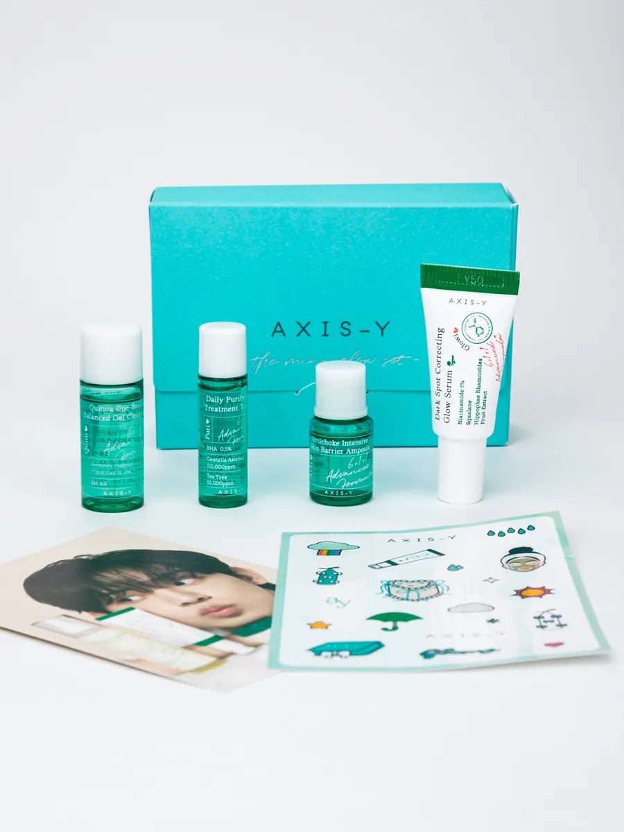 The best-selling AXIS-Y The Mini Glow Set travel set for radiant skin has anti-inflammatory properties, soothes irritation and redness, and helps lighten pigmentation.
