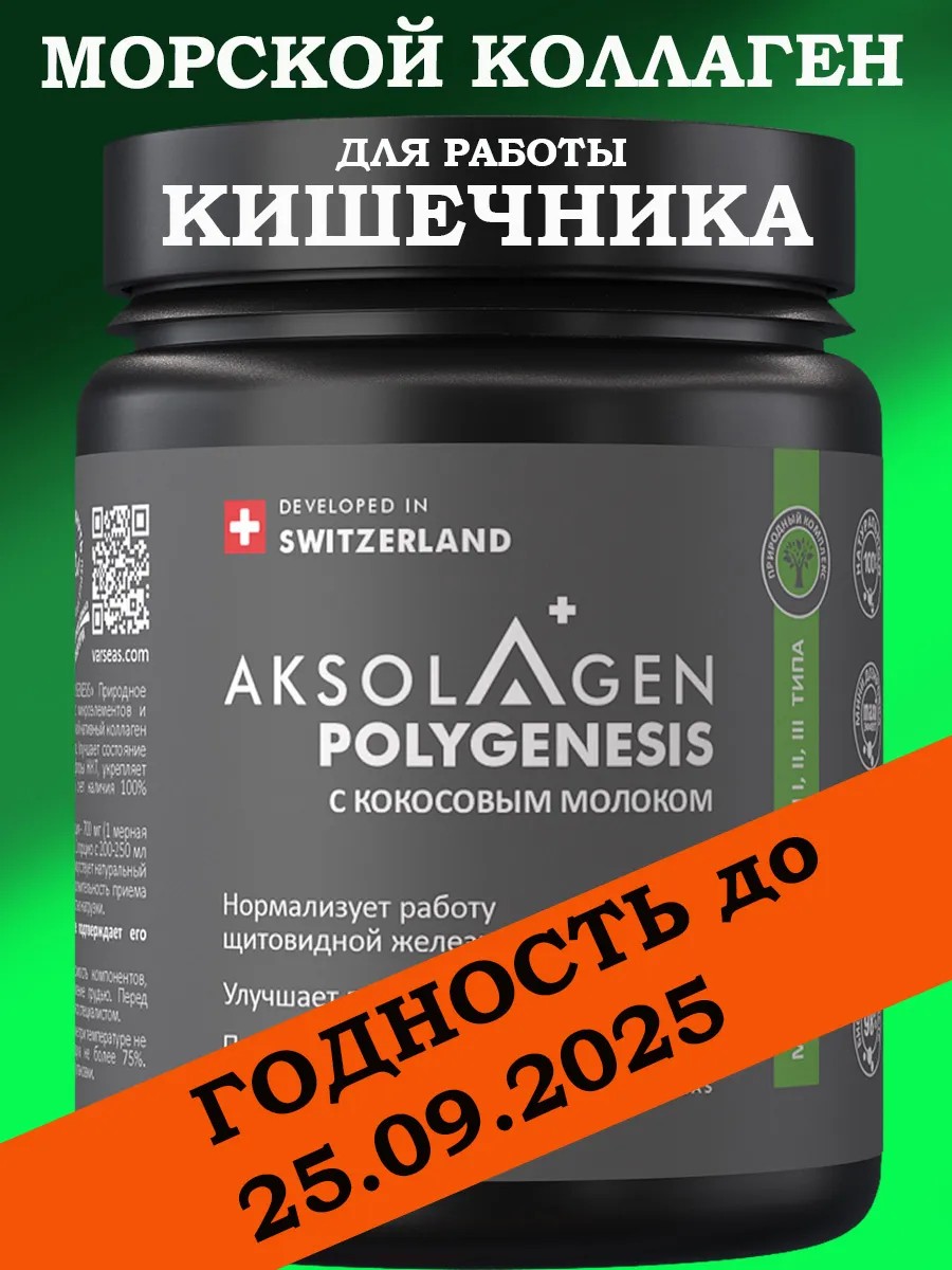 ГОДНОСТЬ до 25.09.2025. Швейцарский Морской коллаген (произведен из гигантского кальмара) с кокосовым молоком AKSOLAGEN polygenesis I, II, III типа с антиоксидантами и витаминным комплексом. Коллаген - порошок, масса нетто - 70 гр (85 доз). Направленность воздействия:
