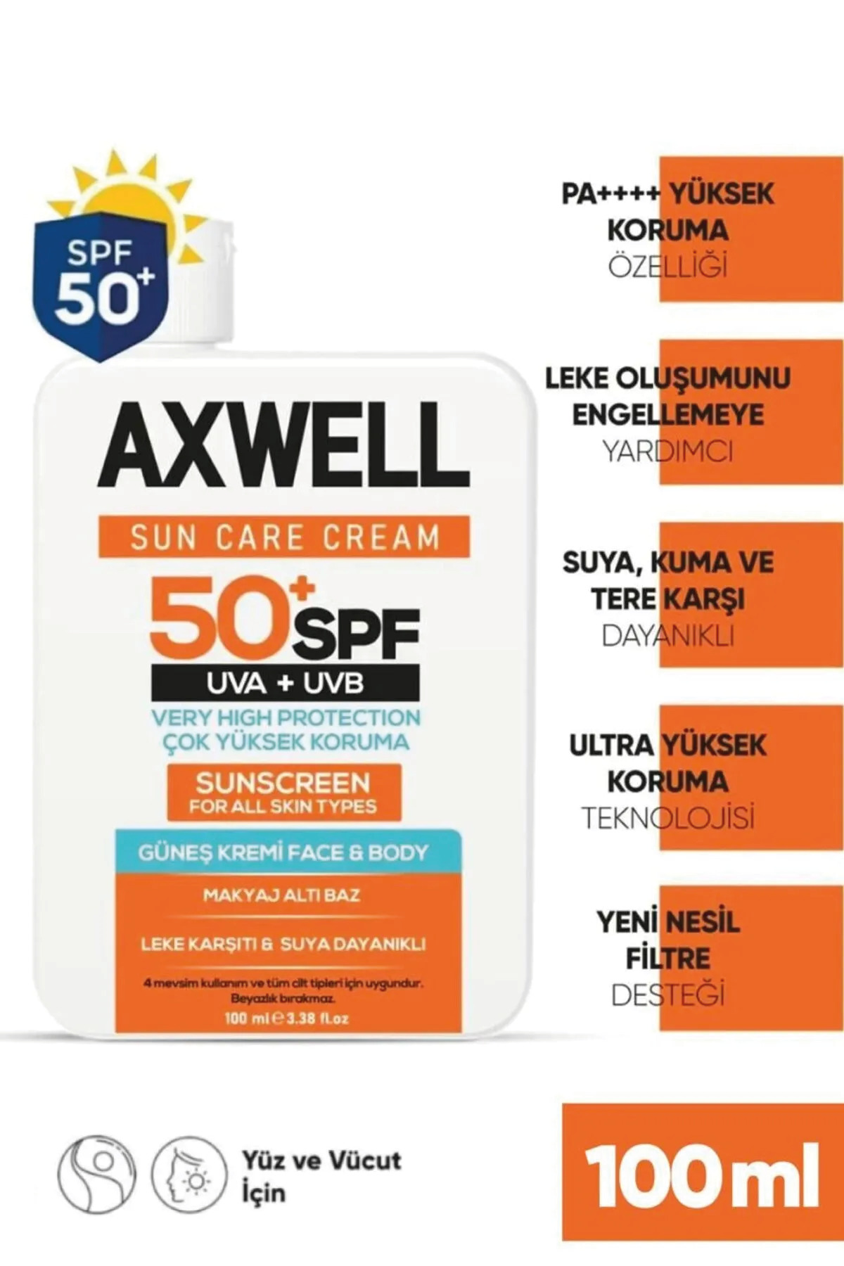 AXWELL Sun Care Cream Anti-Spot Sunscreen Very High Protection 50+ Spf 100 ml