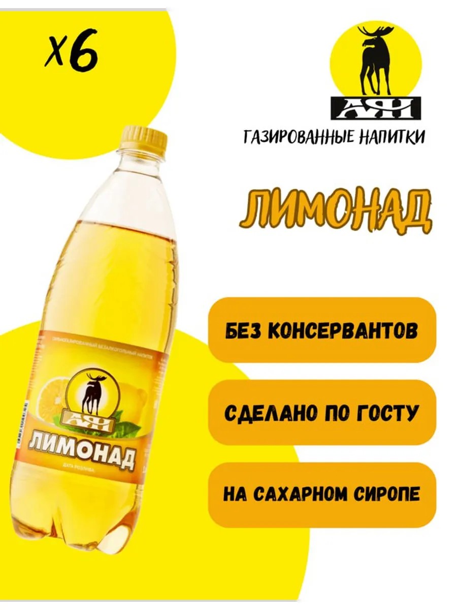 АЯН Напиток сильногазированный Лимонад 1 литр 6 штук