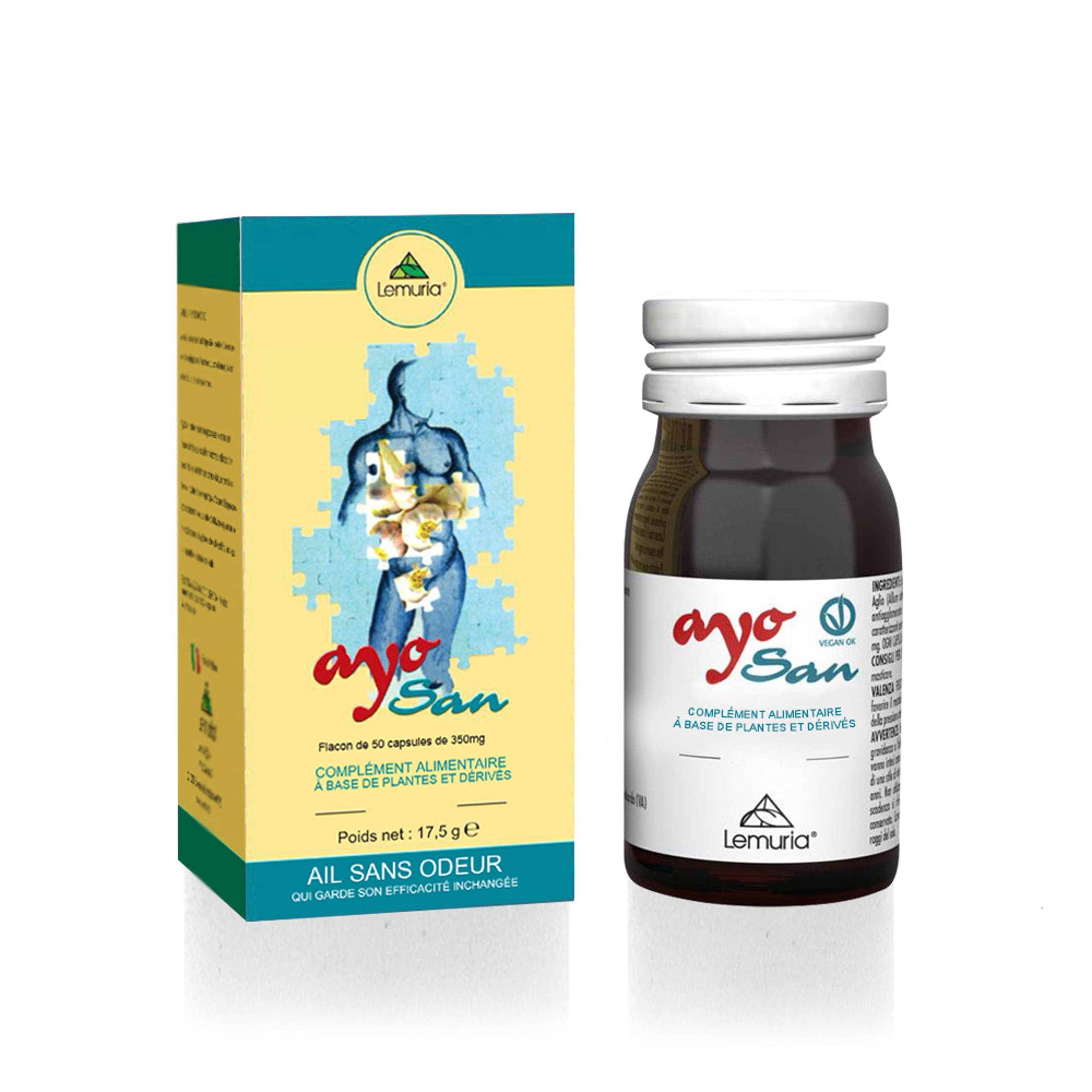 Ayosan of physiological value based on purified and odorless garlic extract. Thanks to its beneficial effects on the entire human body, garlic has been used for thousands of years. Due to its characteristic particularly pungent and unpleasant odor, odorless garlic products have recently been found on the market. Most of these products eliminate bad odors, also contributing to the elimination of fundamental substances from the garlic itself, thus depriving it of its natural effectiveness. Ayosan, the result of recent Japanese research, is the most exclusive, modern and effective expression of a garlic extract that maintains its high primary characteristics, while not causing unpleasant odors after consumption. The garlic bulb also promotes the metabolism of triglycerides and cholesterol, as well as the regularity of blood pressure. Ingredients each 350 mg vegetable gelatin capsule contains: garlic bulb (Allium sativum l.) est.dry. 100 mg, maltodextrin, anti-caking agent: magnesium stearate. Each capsule contains the equivalent of approximately 5g of fresh garlic. Directions for use for adults: take one or two capsules per day. Do not chew. Packaging: bottle of 50 capsules. INGREDIENTS Each 350mg vegetable gelatin capsule (Hydroxypropylmethylcellulose) contains: Garlic (Allium sativum L.) bulb dry extract 100mg, maltodextrin, Anti-caking agent: magnesium stearate. Average content of characteristic ingredients per maximum daily dose of 2 capsules: Garlic bulb 200 mg. SAFETY WARNING Warning: do not exceed the recommended daily dose. During pregnancy and breastfeeding, consult your doctor. Dietary supplements should not be used as a substitute for a varied diet and should be used as part of a healthy lifestyle. Keep out of reach of children under 3 years old. Do not use the term ultimate conservation. The expiration date refers to the product in integrated packaging and properly stored. Store the bottle in a cool, dry place. Once opened, store the bottle in the refrigerator and consume within 30 days. Any sediments are a characteristic of the nature of the product. Do not expose to direct sunlight. Product included in the register of supplements of the Ministry of Health. Made in Italy: Produced with selected ingredients, combining tradition and innovation to ensure quality and sustainability. PRECAUTIONS FOR USE - Do not exceed the recommended daily dose. During pregnancy and breastfeeding, consult your doctor. Supplements should not be used as a substitute for a varied diet and should be used as part of a healthy lifestyle. Keep out of reach of children under 3 years of age. Do not use after the expiry date. The expiry date refers to the product in unopened and properly stored packaging. Store the bottle in a cool, dry place. Once opened, the bottle should be refrigerated and consumed within 30 days. Any sediment is a natural characteristic of the product. ? Preserved Effectiveness: Thanks to Japanese research, Ayosan preserves the active compounds of garlic to offer an effective and modern product, without compromise. Blood Pressure Support: Helps regulate blood pressure, promoting optimal balance. Cardiovascular Benefits: It promotes the metabolism of triglycerides and cholesterol, thus helping to maintain a healthy heart. High Quality Odorless Garlic: Ayosan uses purified and odorless garlic extract, which retains all its beneficial properties without the discomfort of the strong odor. Ayosan de valeur physiologique à base d'extrait d'ail purifié et inodore. Grâce à ses effets bénéfiques sur l'ensemble du corps humain, l'ail est utilisé depuis des milliers d'années. En raison de son odeur caractéristique particulièrement piquante et désagréable, des produits inodores à base d'ail ont récemment été trouvés sur le marché. La plupart de ces produits éliminent les mauvaises odeurs, contribuant également à l'élimination des substances fondamentales de l'ail lui-même, le privant ainsi de son efficacité naturelle. L'Ayosan, fruit de recherches japonaises récentes, est l'expression la plus exclusive, moderne et efficace d'un extrait d'ail qui conserve ses caractéristiques primaires élevées, tout en ne provoquant pas d'odeurs désagréables après consommation. Le bulbe d'ail favorise également le métabolisme des triglycérides et du cholestérol, ainsi que la régularité de la tension artérielle. Ingrédients chaque capsule de gélatine végétale de 350 mg contient : bulbe d'ail (Allium sativum l.) est.sec. 100 mg, maltodextrine, anti-agglomérant : stéarate de magnésium. Chaque gélule contient l'équivalent d'environ 5g d'ail frais. Conseils d'utilisation adultes : prendre une ou deux gélules par jour. Ne mâchez pas. Conditionnement : flacon de 50 gélules. INGRÉDIENTS Chaque capsule de gélatine végétale de 350mg (Hydroxypropylméthylcellulose) contient : Ail (Allium sativum L.) bulbe extrait sec 100mg, maltodextrine, Anti-agglomérant: stéarate de magnésium. Teneur moyenne en ingrédients caractéristiques par dose journalière maximale de 2 capsules: Bulbe d'ail 200 mg. AVERTISSEMENT DE SÛRETÉ Avertissement : ne pas dépasser la dose quotidienne recommandée. Pendant la grossesse et l'allaitement, consultez votre médecin. Les compléments alimentaires ne doivent pas être utilisés comme substituts d'un régime alimentaire varié et doivent être utilisés dans le cadre d'un mode de vie sain. Tenir hors de portée des enfants de moins de 3 ans. Ne pas utiliser le terme de conservation ultime. La date d'expiration se réfère au produit en emballage intégré et correctement conservé. Conserver le flacon dans un endroit frais et sec. Une fois ouvert, conserver le flacon au réfrigérateur et consommer dans les 30 jours. Les éventuels sédiments sont une caractéristique de la nature du produit. Ne pas exposer aux rayons du soleil. Produit inclus dans le registre des compléments du Ministère de la Santé. Fabriqué en Italie : Produit avec des 