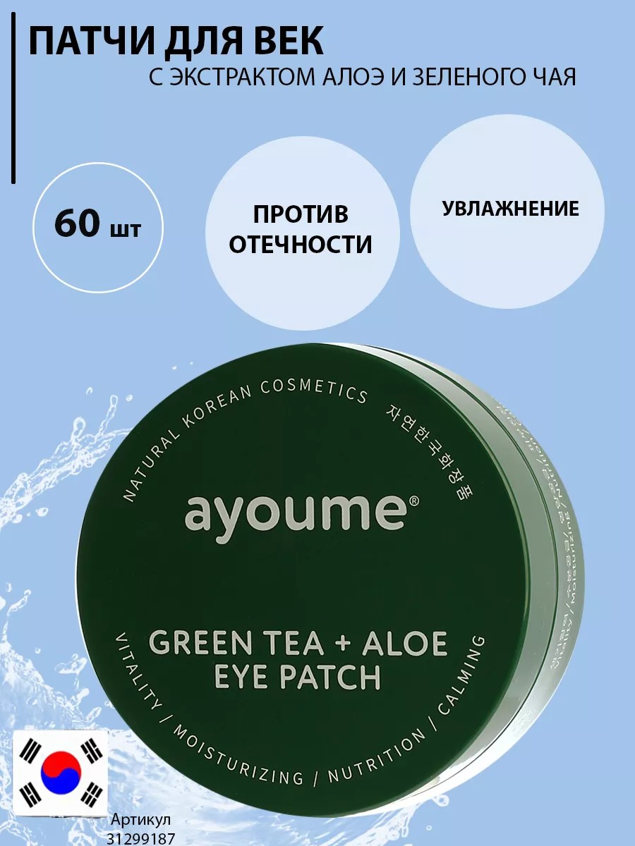 ayoume Патчи для глаз от отеков и мешков с зеленым чаем алоэ 60 шт