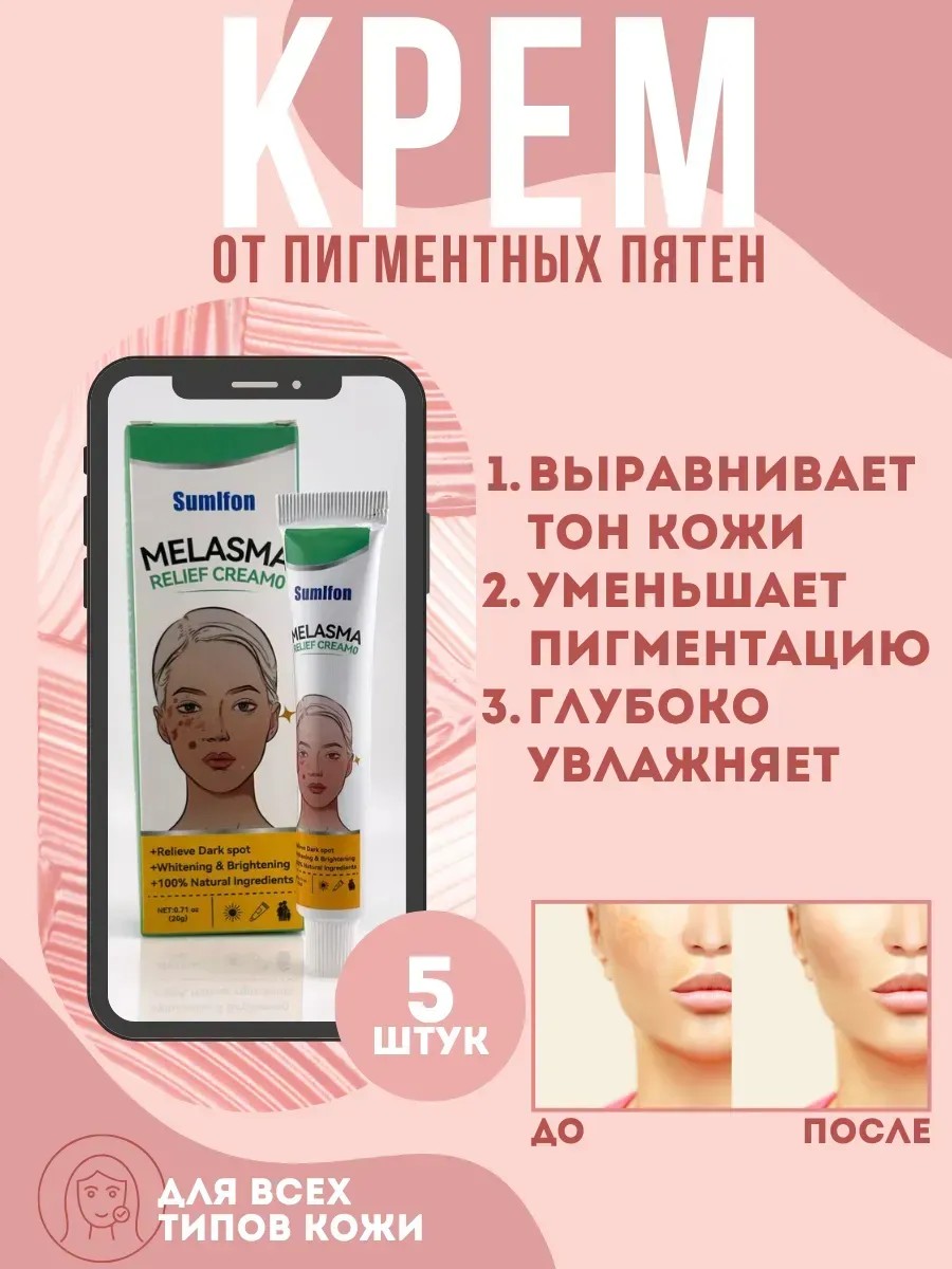| Комплектация | Крем против пигментных пятен, удаления веснушек и темных пятен 5 шт. |