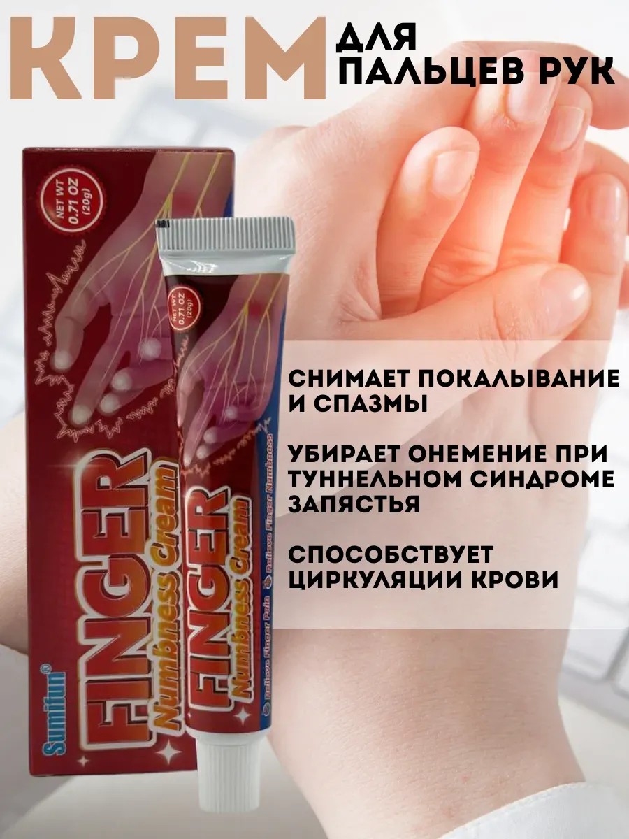 Крем для рук от онемения, от спазм и от нейропатии. Крем профилактиктика суставных и костных заболеваний, поможет вам избавиться от боли и дискомфорта уже через 15 минут после нанесения. Мазь эффективно помогает при судорогах рук и пальцев, при растяжении сухожилий рук, при онемении пальцев рук, при ушибах и переохлаждении рук, при вибрационной болезни, при острых болях в локтях и в плечевом суставе, а также при кистевом тунельном синдроме запястного канала «болезнь доярки». Боль в кистях рук (синдром запястного канала)