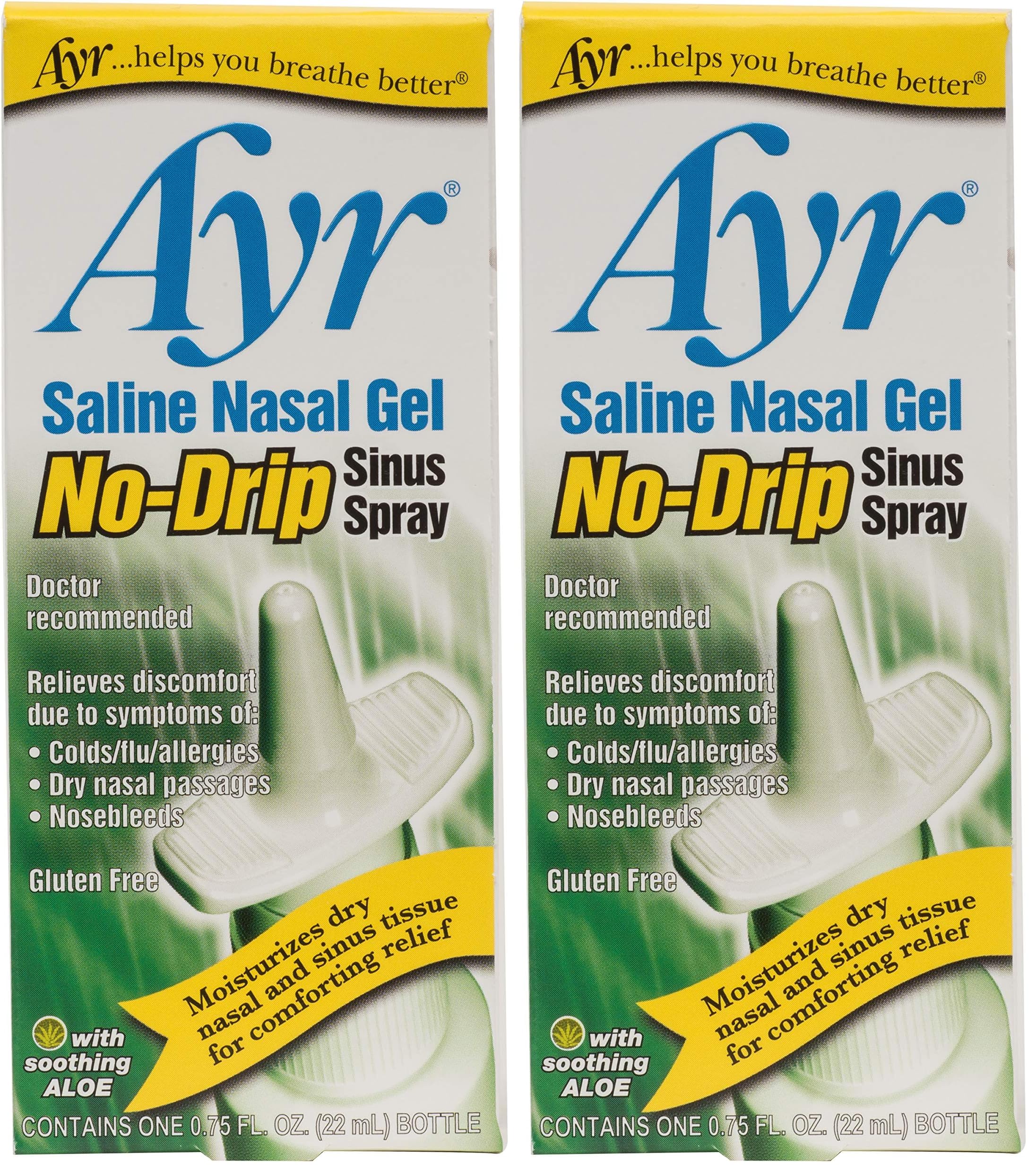 AYR Saline Nasal Gel No-drip Sinus Spray with Soothing Aloe Vera 0.75 Fl Oz Spray Bottle (Pack of 2) 0.75 Fl Oz (Pack of 2)