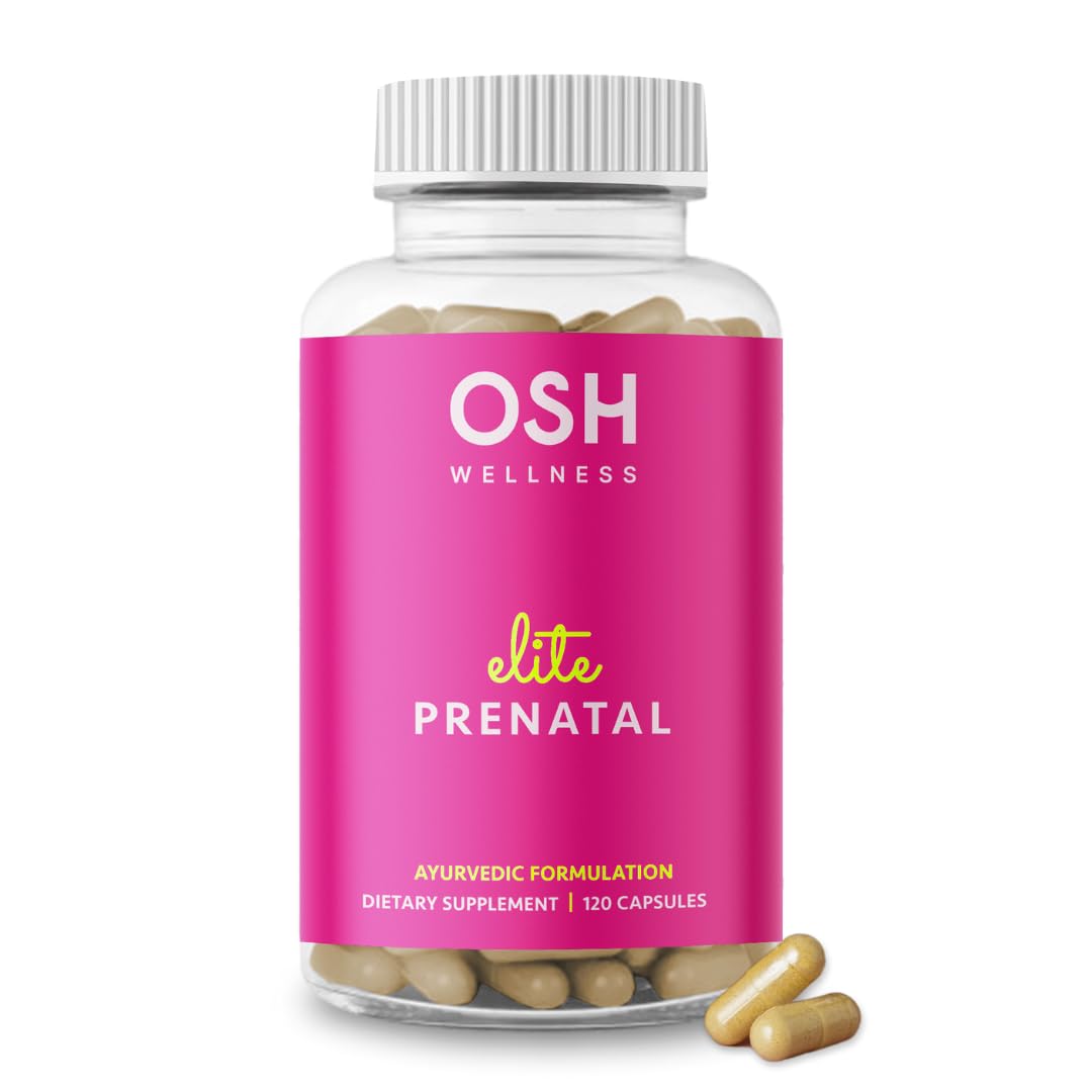 Ayurvedic Elite Prenatal Vitamins with Folate Choline Iron Iodine & more | Made in USA | Optimal Bioavailability | Supports Baby's Growth and Brain Development | 30 Day Supply - OSH Wellness