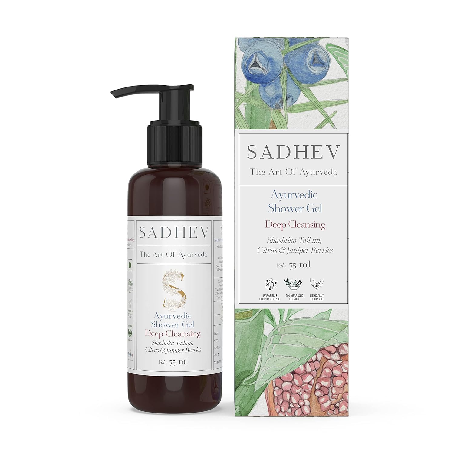 Ayurvedic Shower Gel With Shashtika Tailam, Citrus And Juniper Berries, For Deep Cleansing -75 ml