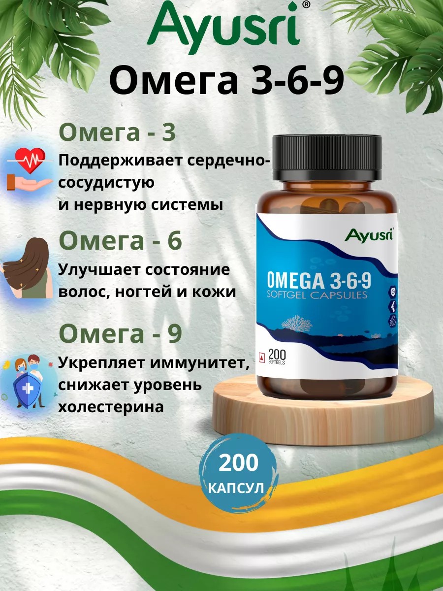 | Комплектация | Омега 3-6-9; омега 3-6-9 в капсулах; 200 капсул; Omega3-6-9; Ayusri |