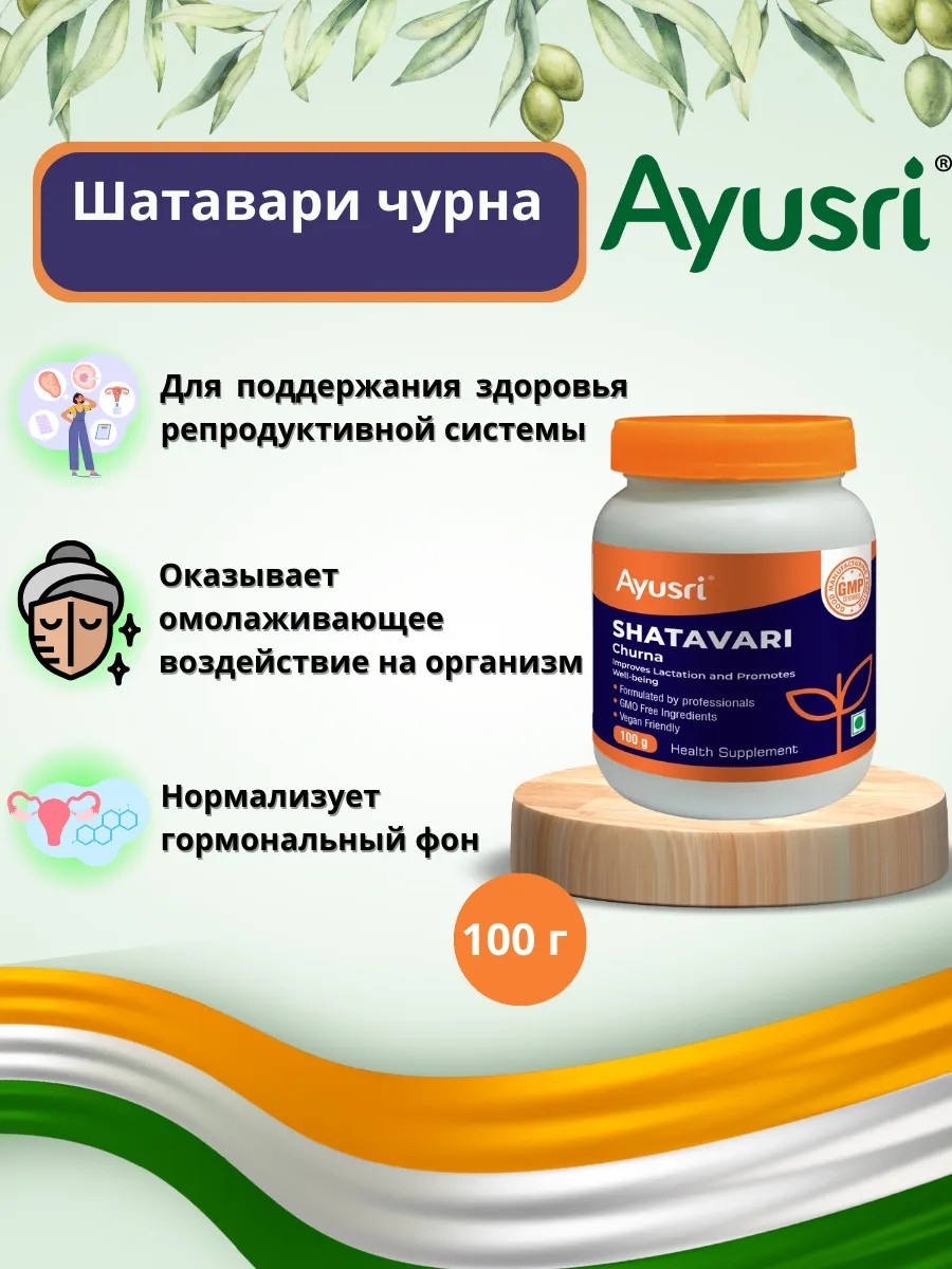 | Комплектация | Шатавари порошок; для репродуктивной системы; 100 гр; Ayusri |