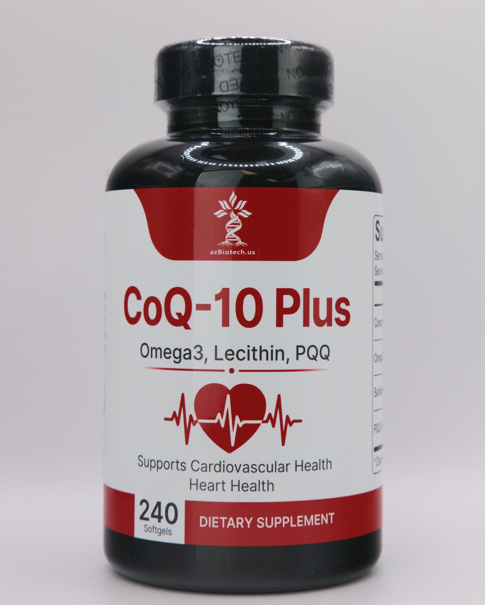 AZBiotech CoQ-10 Plus is formulated to provide advanced nutritional support with a unique combination of Coenzyme Q10, Omega-3 fish oil, sunflower lecithin, and PQQ. With 400mg of CoQ10 per serving, this formula is designed for those looking to support energy metabolism at the cellular level. Omega-3 fish oil delivers 950mg per serving, offering essential fatty acids that are part of a balanced lifestyle. Sunflower lecithin and 20mg of PQQ round out the formula, making it a convenient all-in-one daily softgel. Each bottle provides 240 softgels — a full 120-day supply when taken as directed. Whether you're focused on daily vitality or supporting long-term wellness goals, AZBiotech CoQ-10 Plus delivers a well-rounded solution you can rely on.