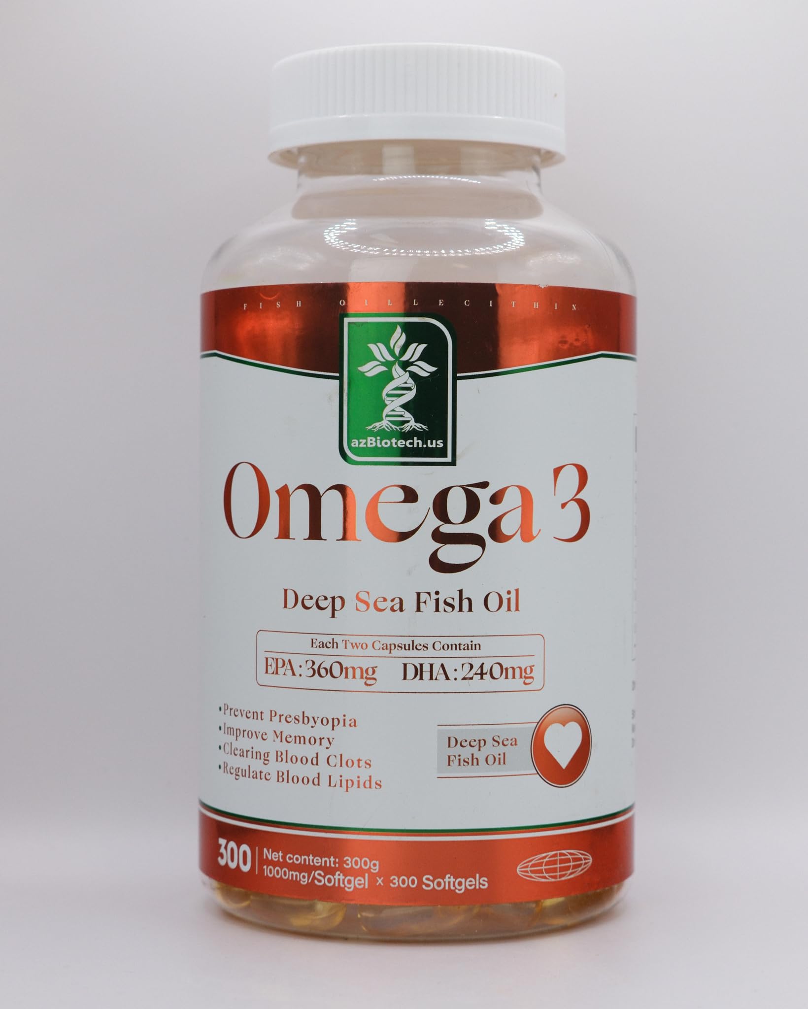 AZ BIOTECH Omega 3 Deep Sea Fish Oil - 2000mg Fish Oil Concentrate Per Serving. EPA 360mg DHA 240mg. 2 Softgels Daily. 300 Softgels