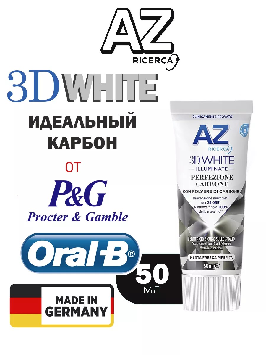 | Комплектация | AZ-Ricerca 3D White Perfection Carbon black с действием для отбеливания зубов- 1шт |