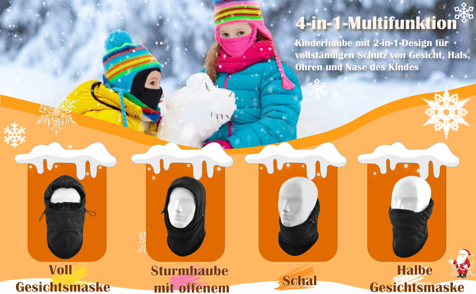 -- Verwendet als Fleece-Sturmhaube, bedeckt es vollständig den Kopf und hält das Kind 100% warm.