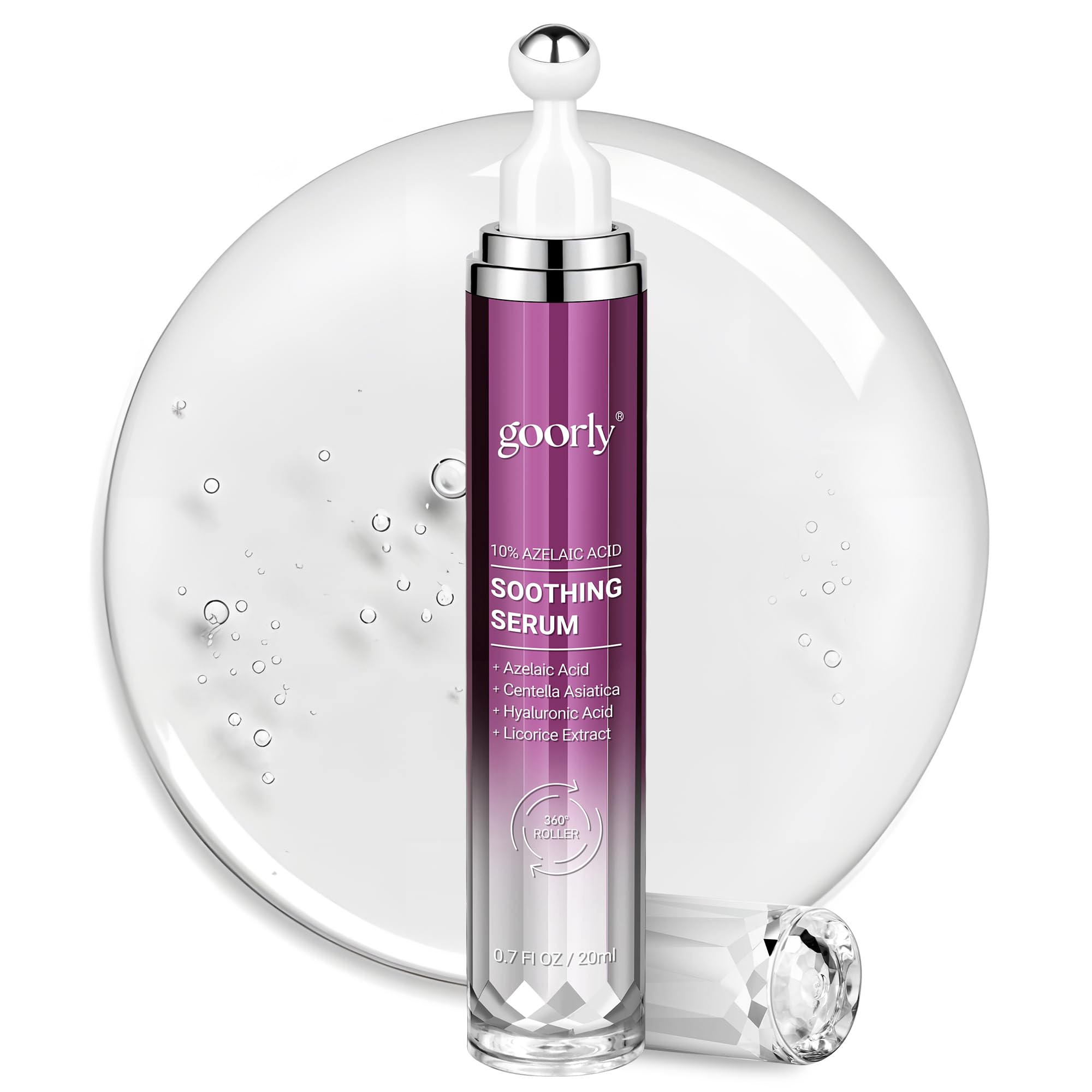 Azelaic Acid 10% for Face with 360 Roller, Centella Asiatica and Hyaluronic Acid Soothing Serum for Redness & Sensitive Skin, 0.7 fl oz