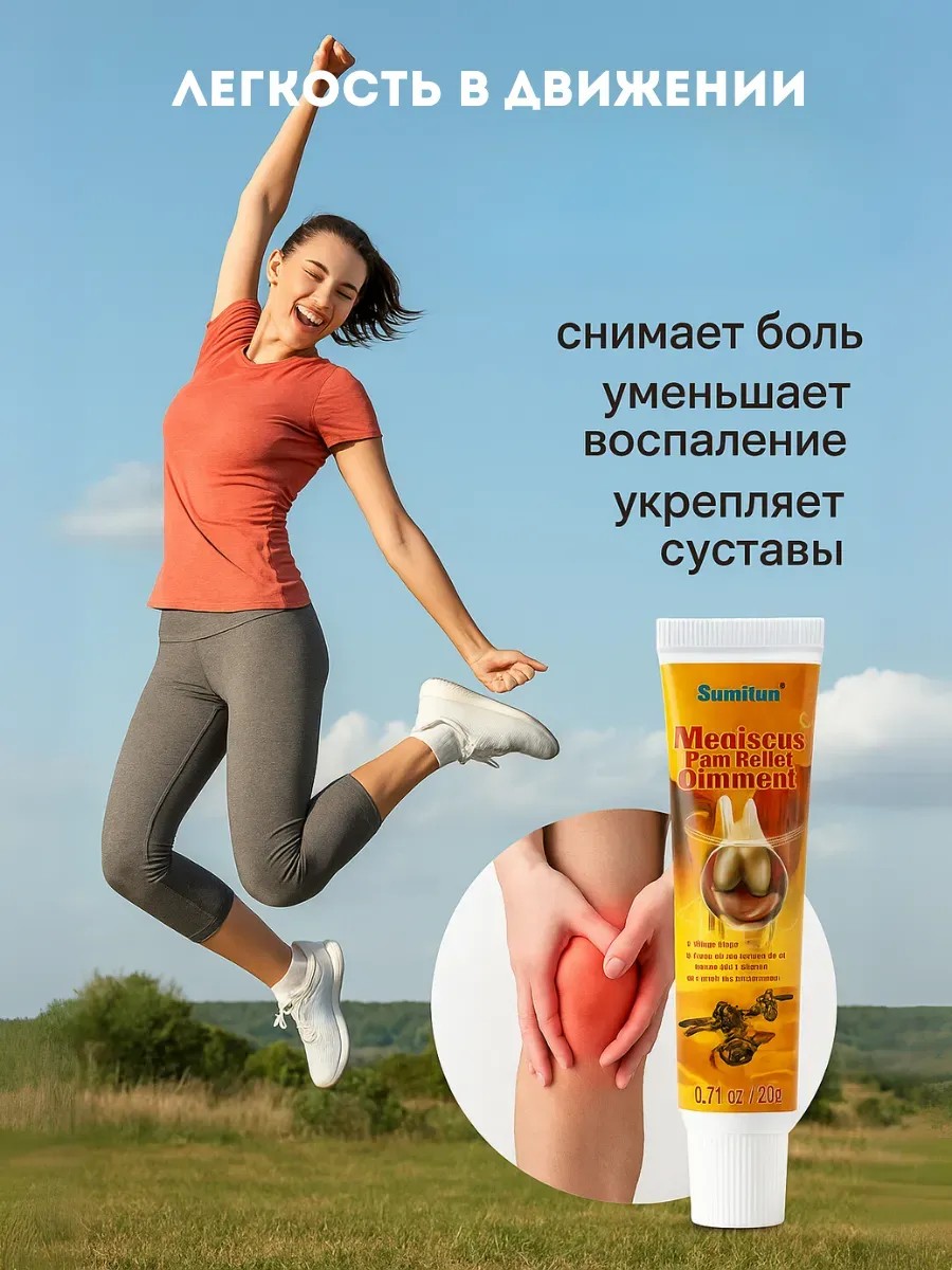 Быстрое восстановление. Активные компоненты ускоряют восстановление тканей, что особенно важно при болях в коленях и мениске.