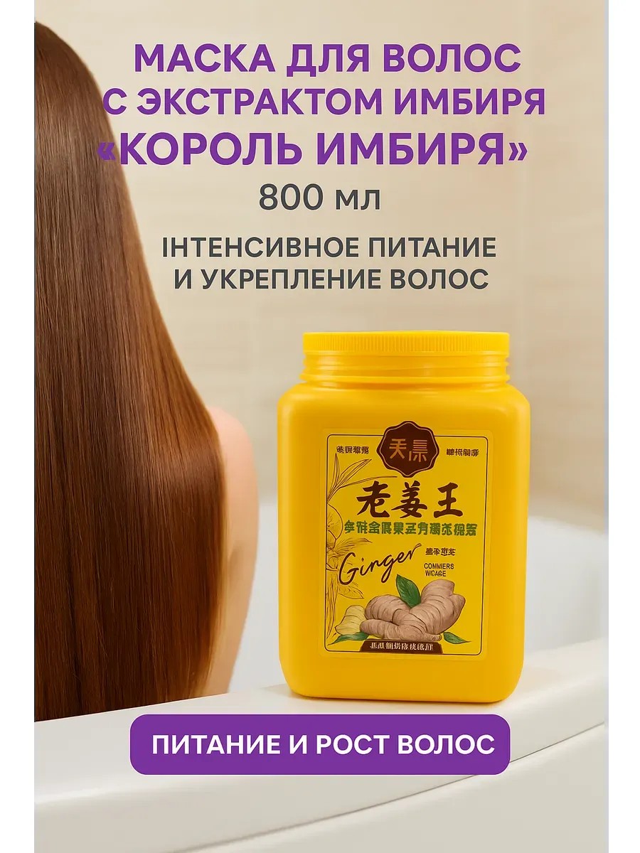 Маска для волос с имбирём "Король Имбиря", 800 мл — это профессиональный уход в домашних условиях. Продукт разработан на основе натурального имбирного экстракта и растительных компонентов, направленных на восстановление и укрепление волос, предотвращение выпадения, а также питание и увлажнение по всей длине.