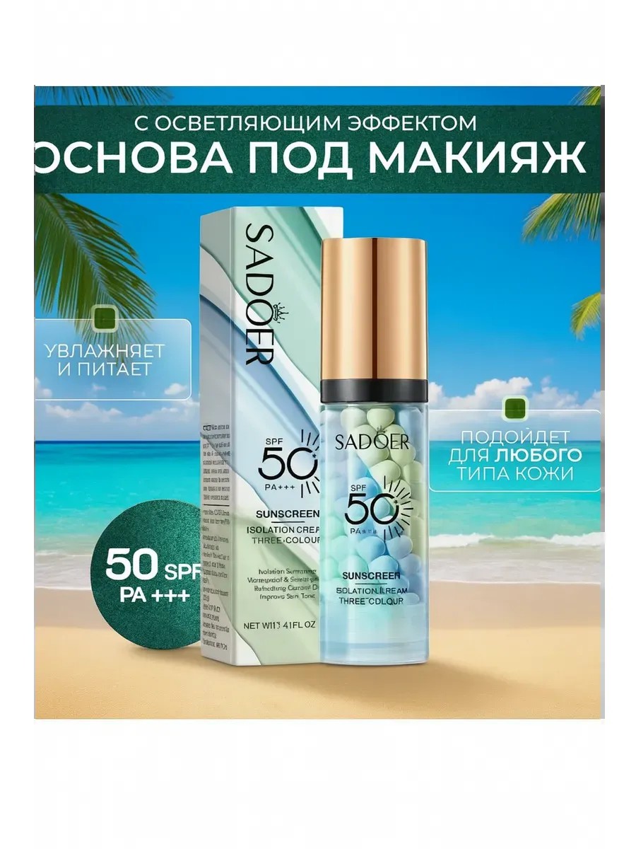 Sadoer SPF50+ PA+++ - это косметическое средство, основа под макияж, которое отличное подготавливает кожу для нанесения декоративной косметики: тонального крема, ВВ- СС- кремов, консилера. Легко ложится, не оставляет липкости, увлажняет и выравнивает общий тон кожи лица. Благодаря увлажняющему действию, основа под макияж не подчеркивает шелушения. Защищает кожу от пагубного воздействия УФ-лучей. Отличный вариант, если Вы хотите улучшить общий тон и придать коже сияние, не используя плотные тональные кремы.