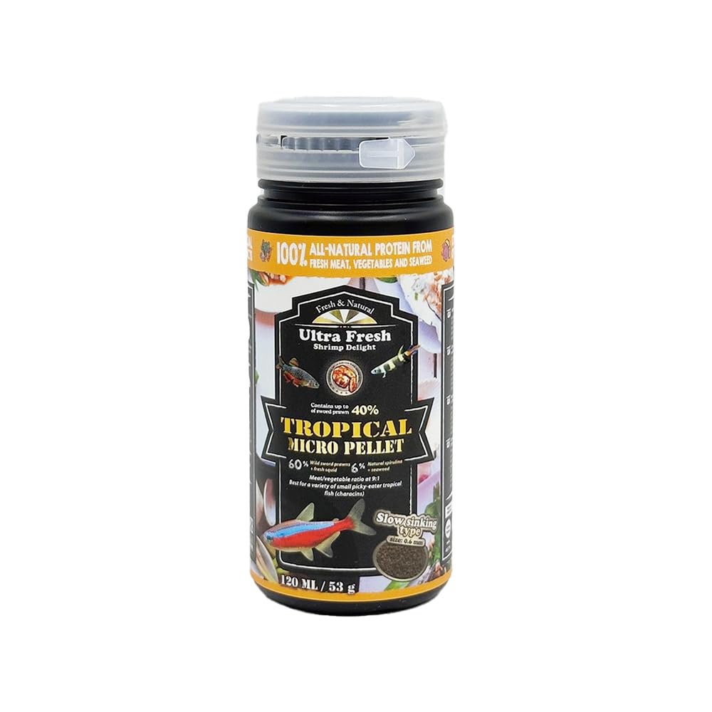 100 naturally nutritious and formulated for palatability Formulated with high content of wild sword shrimp (up to 40 ), fresh squid, natural spirulina, fresh-pick garlic, plus a blend of carefully selected natural ingredients, this formulation provides high palatability and nutritional value for a variety of small picky-eater tropical fish (characins). Rapid intake maintains water cleanliness 10 hours of low temperature treatment and Enhanced with intestinal probiotics, this formulation preserves the natural flavors and rich nutritional values of fresh ingredients. It has been designed to be quickly softened once in water, but does not disintegrate in cloud and water. Easy intake for fish. Helps with easy digestion and complete absorption of nutrients, which helps reduce the excretion of waste. Natural coloring (6 Spirulina Algae Norwegian Australian). Natural Algae and Premium Fresh Australian Sword Prawns enhances the natural coloring of your fish, presenting them in their most vibrant and natural colors with no speckled tints Polypore Polysaccharides, Garlic and Vitamin B Group added to enhance immunity. Natural ß-carotene, minerals, and trace elements strengthen your fish's immune system, stimulate metabolism, increase energy and reduce slow sinking type diseases. Size: 0.6 mm.Natural, minerals and trace elements to strengthen your fish's immune system, boost metabolism, increase energy and reduce illness. 100 naturally nutritious and formulated for palatability Formulated with high content of wild sword shrimp (up to 40 ), fresh squid, natural spirulina, fresh-pick garlic, plus a blend of carefully selected natural ingredients, this formulation provides high palatability and nutritional value for a variety of small picky-eater tropical fish (characins). 100 naturellement nutritifs et formulé pour une palatabilité formulé avec haute teneur en épée les crevettes sauvages (jusqu "à 40 ), Fresh Squid, la spiruline naturelle, fresh-pick ail, plus un mélange d'ingrédients naturels sélectionnés avec soin, cette formulation offre une haute palatabilité et la valeur nutritive pour une variété de petites picky-eater poissons tropicaux (characins). rapidement d'admission maintient la propreté de l'eau 10 heures de traitement à basse température et amélioré avec probiotiques intestinal, cette formulation préserve les saveurs naturelles et la richesse des valeurs nutritionnelles des ingrédients frais. Il a été conçu pour être rapidement adoucie une fois dans l'eau, mais ne se désintègrent dans le cloud et l'eau. Facile d'admission pour le poisson aide à la digestion facile et complète de l'absorption des nutriments, ce qui permet de réduire l'excrétion de déchets. Coloration naturelle (6 algue spiruline norvégien australien) formulation du propriétaire de la spiruline, les algues naturelles et australienne Premium frais épée gambas améliore la coloration naturelle de vos poissons, les présentant dans leurs couleurs les plus vives et naturelles en l'absence de teintes tacheté. polypore polysaccharides, l'ail et la vitamine B groupe ajouté pour renforcer l'immunité rabatable immune-boost Formule : riche en nutriments tels que le polypore polysaccharides, l'ail, la spiruline australien, de la vitamine A, D3, C, E, B1, B2, B6, et B12), ß-carotene naturelles, minéraux, oligo-éléments et à fortifier votre système immunitaire du poisson, stimuler le métabolisme, augmenter l'énergie et réduire les maladies. Lent naufrage de type taille : 0,6 mmNaturel, de minéraux et oligo-éléments pour fortifier votre système immunitaire d'un poisson, stimuler le métabolisme, augmenter l'énergie et réduire les maladies. 100 naturellement nutritifs et formulé pour une palatabilité formulé avec haute teneur en épée les crevettes sauvages (jusqu "à 40 ), Fresh Squid, la spiruline naturelle, fresh-pick ail, plus un mélange d'ingrédients naturels sélectionnés avec soin, cette formulation offre une haute palatabilité et la valeur nutritive pour une variété de petites picky-eater poissons tropicaux (characins).