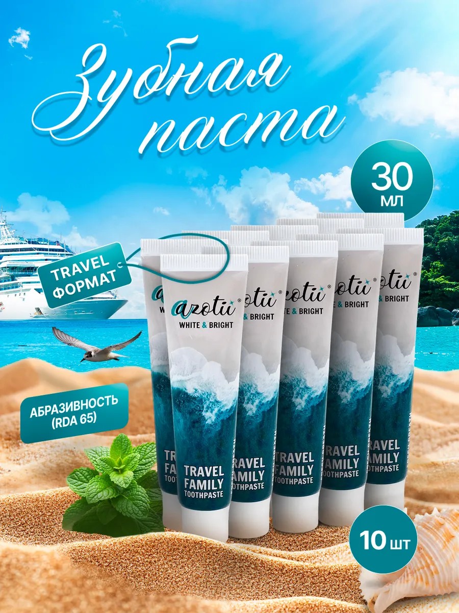 | Комплектация | Семейная зубная паста Azotii Travel Family (30 мл) - 10 шт. |